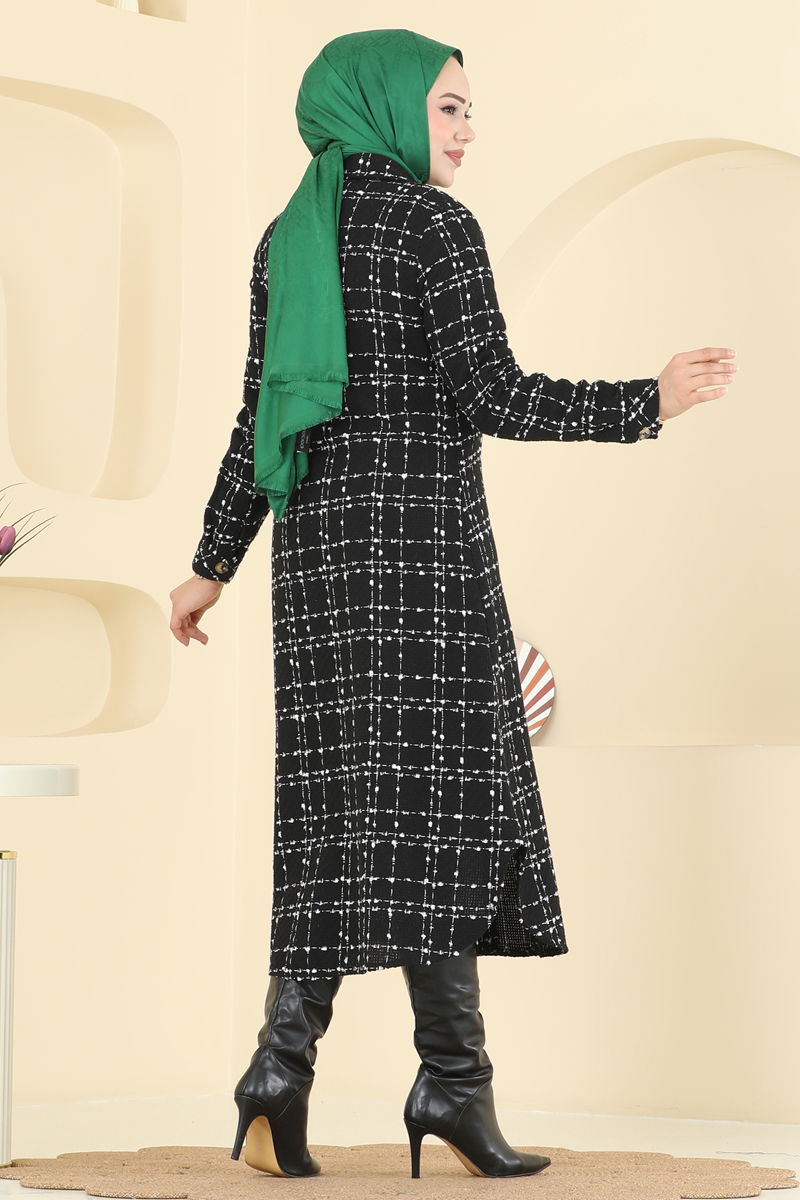 Siyah Ön Düğmeli Tüvit Tunik