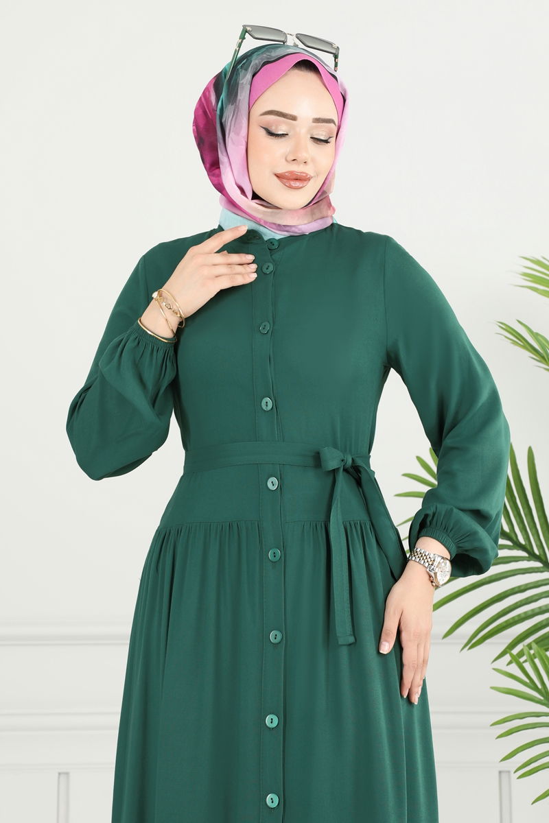 Önden Düğmeli Viskon Elbise 1124BG354-MS Zümrüt