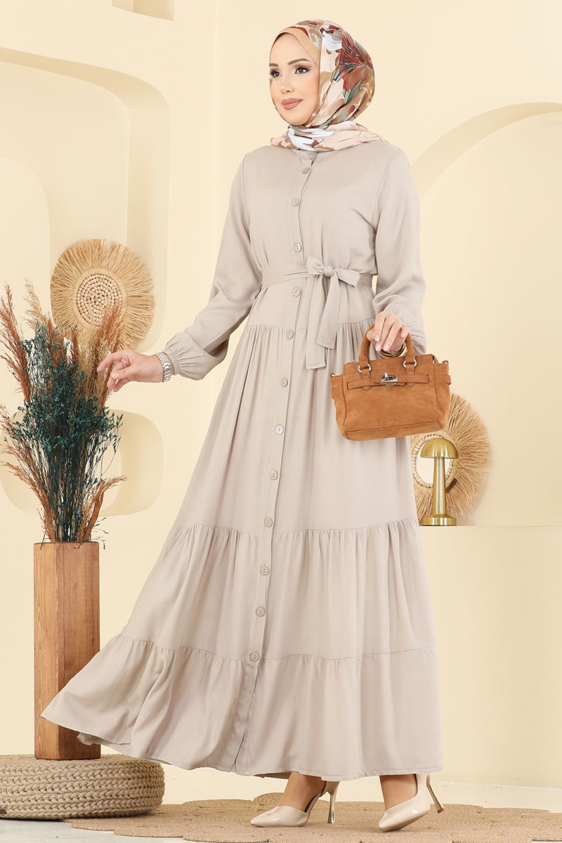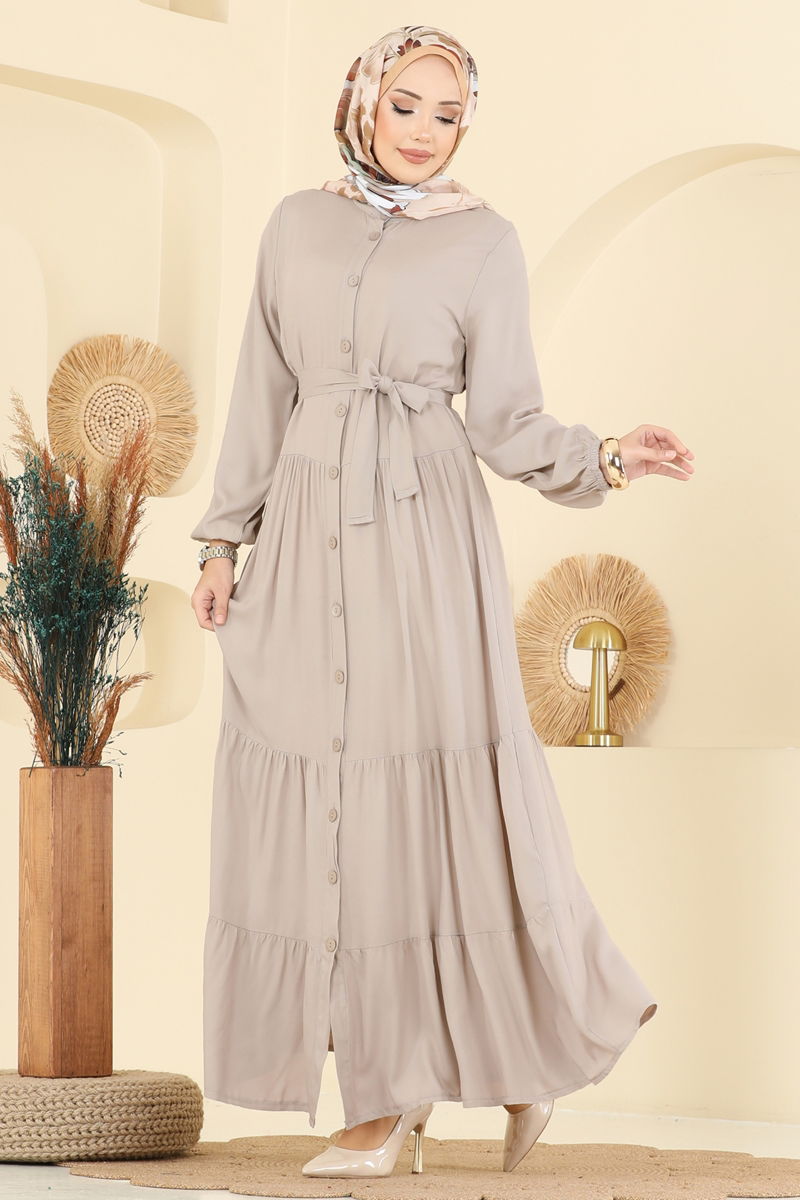 Önden Düğmeli Viskon Elbise 1124ERK1158-MS Taş