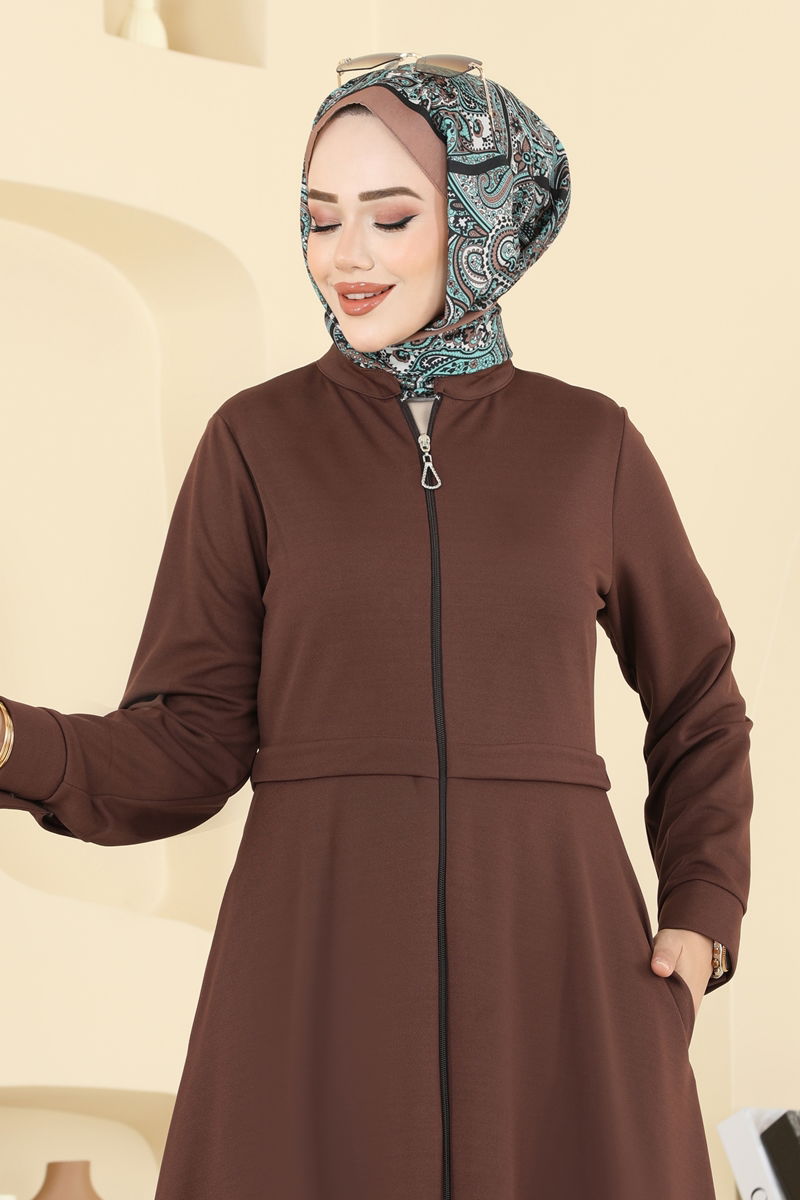 Önden Fermuar Detaylı Ferace 23032UKB139-MS Kahve