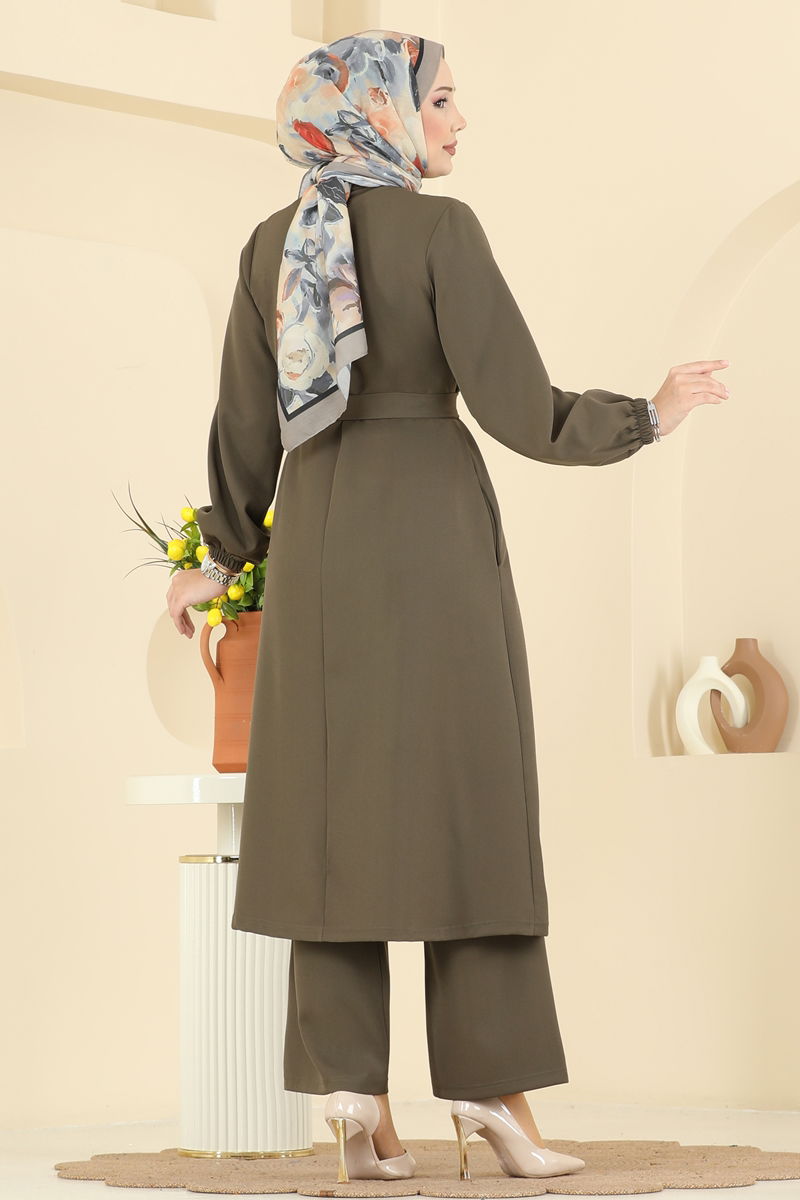 Önden Fermuar Detaylı Takım 2767SL432-MS Haki