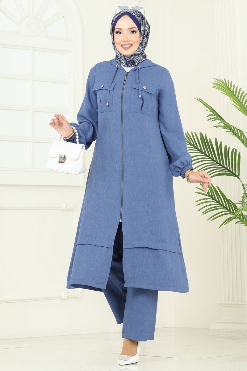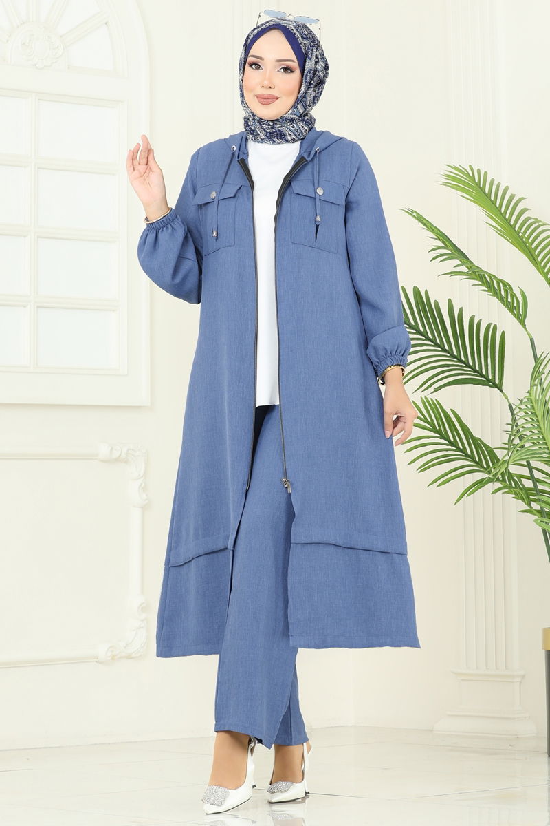 İndigo Renk Fermuarlı ve Cepli Takım Seti