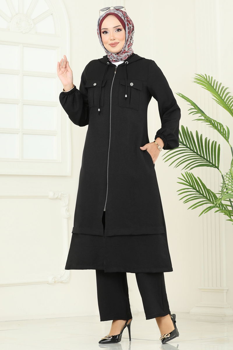 Önden Fermuarlı Cepli Takım 2715SL432-MS Siyah