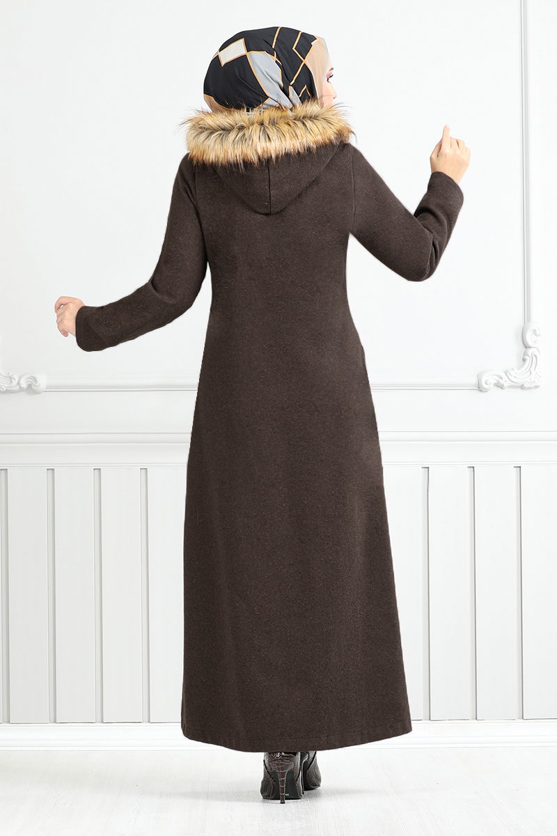 Önden Fermuarlı Kaşe Kaban 2058BGS895-M Kahve