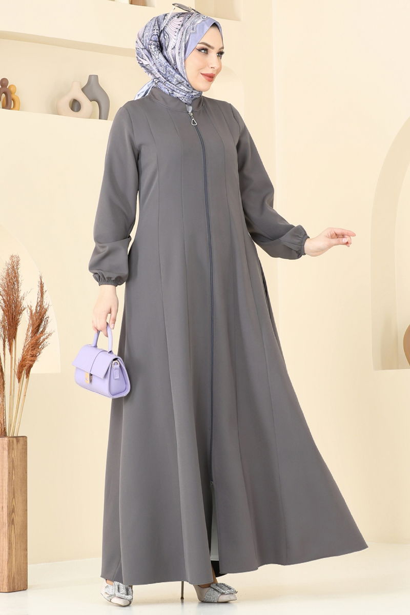 Önden Fermuarlı Pardesü Ferace 23003UKB139-MS Antrasit
