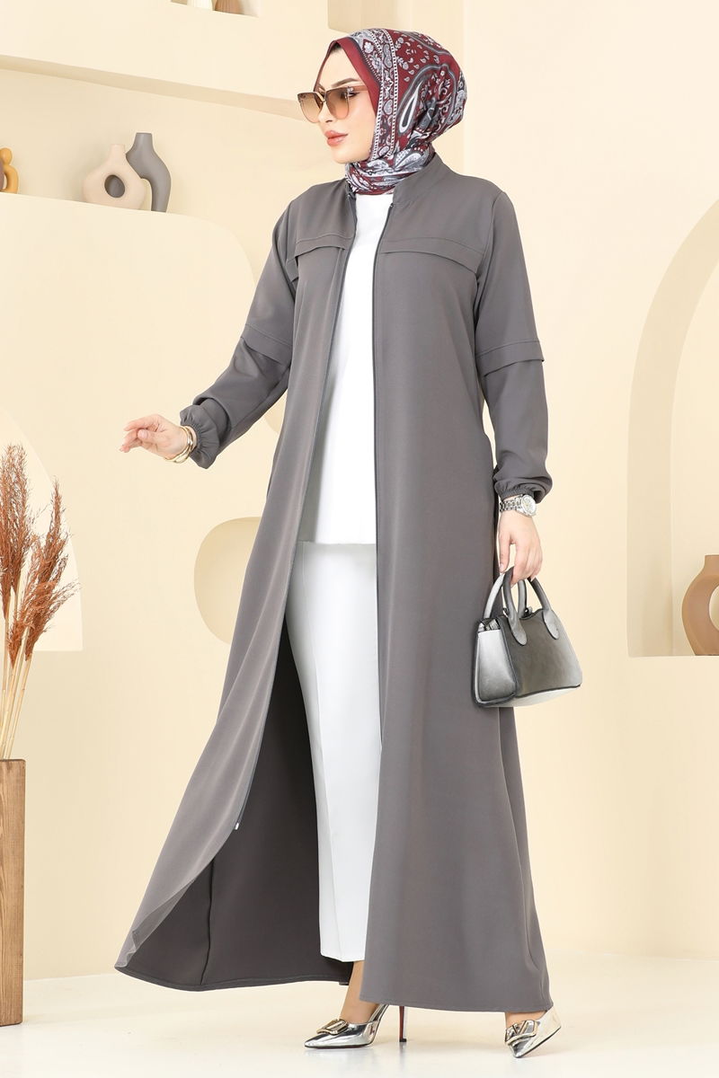 Antrasit Renkli Fermuarlı Pardesü Ferace