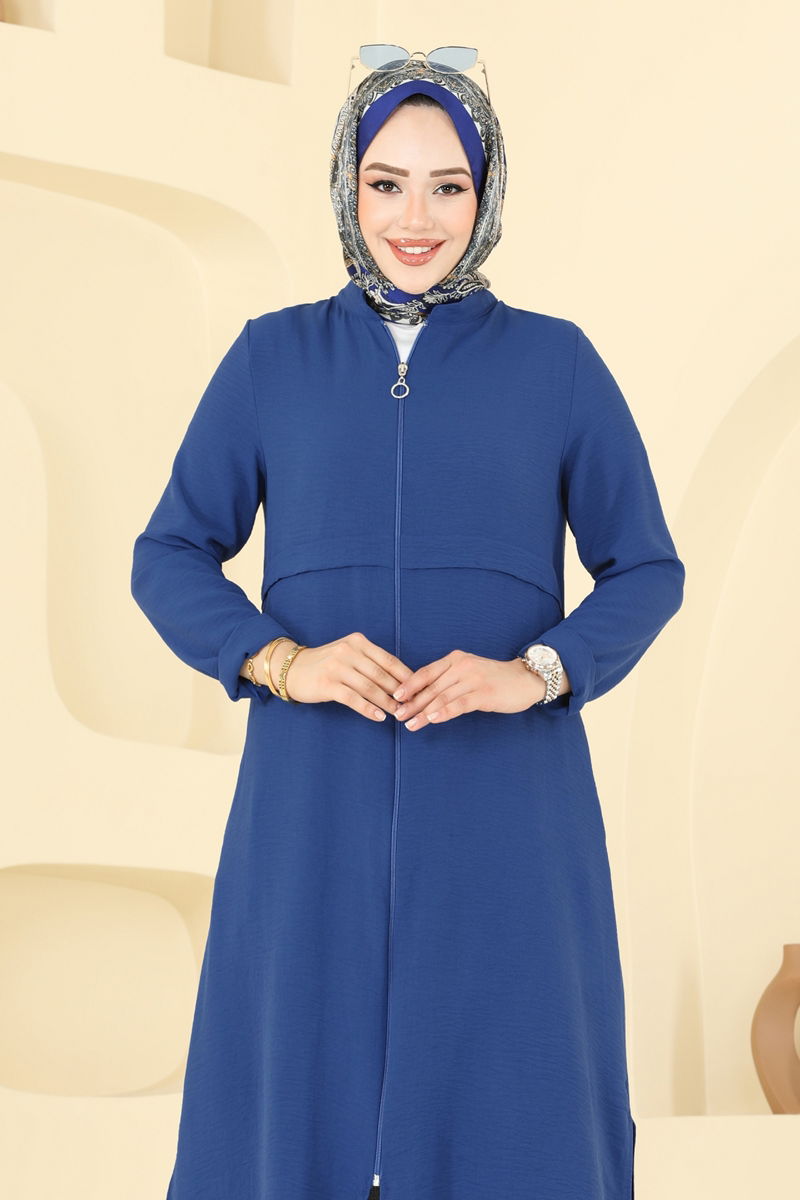 İndigo Renkli Fermuar Detaylı Tesettür Takım