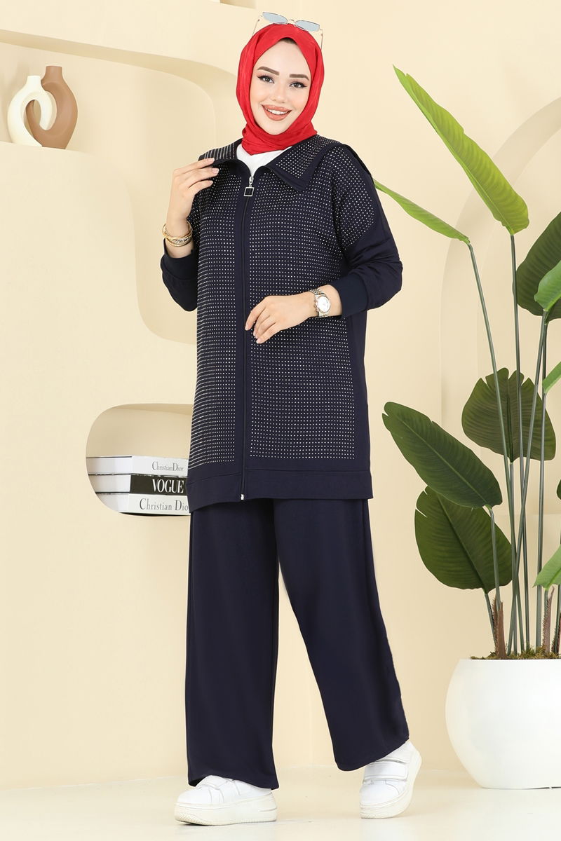 Ürün Detayları: Modaya uygun tesettür tasarımı. Astar içermez. Ürünün ön kısmında fermuar bulunmaktadır. Taşlar yapışkanlıdır. Pantolonun beli elastiktir.Fotoğraf çekimi tekniklerinden ötürü renklerde farklılık görülebilir.