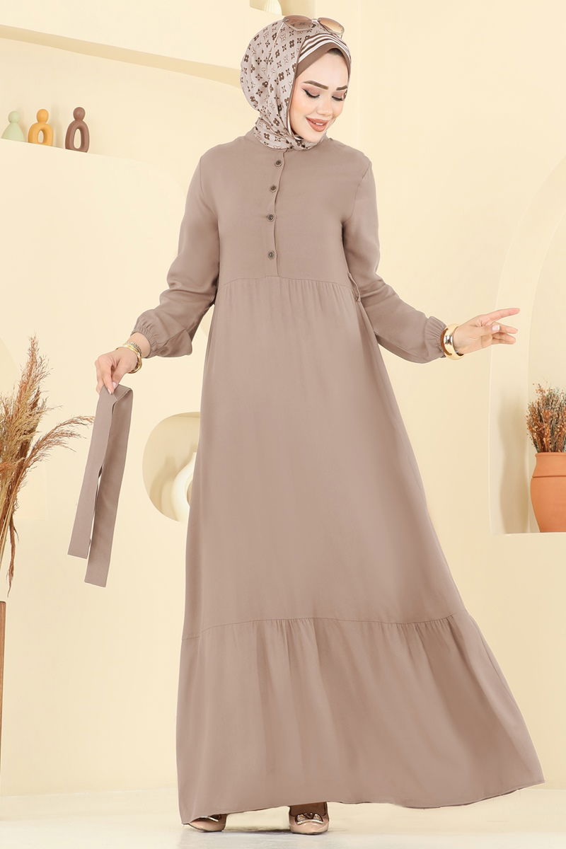 Önden Yarım Düğmeli Elbise 5003ERK1158-MS Vizyon