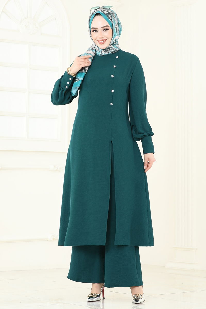Önden Yırtmaçlı Tesettür Takım 2664SL432-MS Petrol