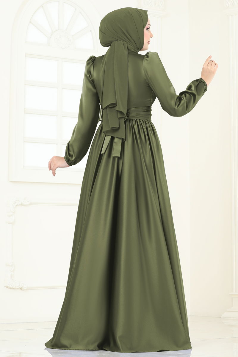 Önü Drapeli Saten Abiye 2382ANT466-MS Haki