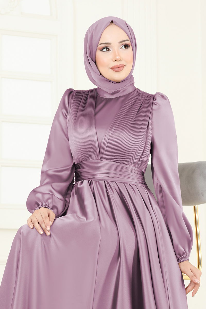 Önü Drapeli Saten Abiye 2382ANT466-MS Pudra