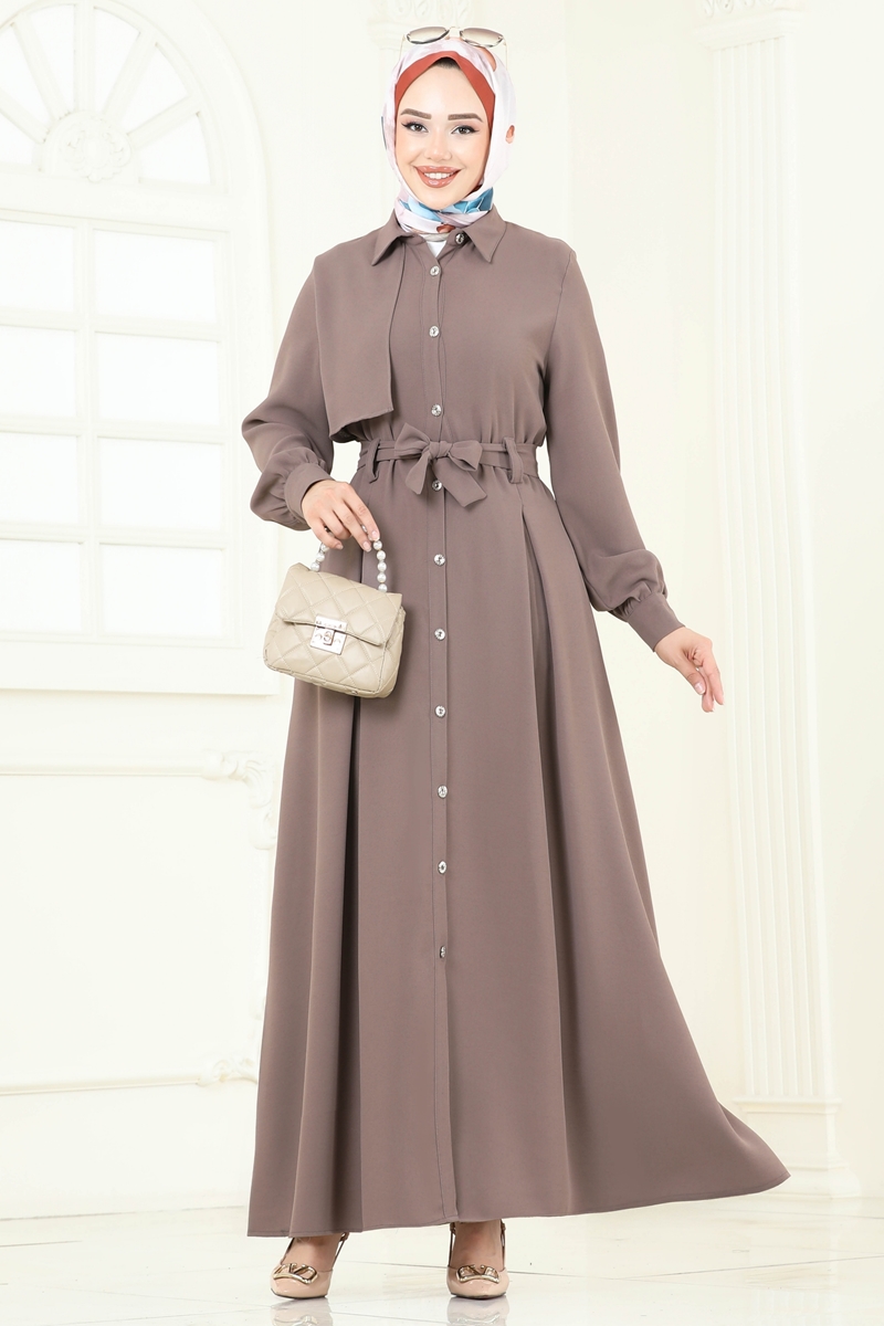 Önü Düğmeli Elbise Ferace Koyu Vizon