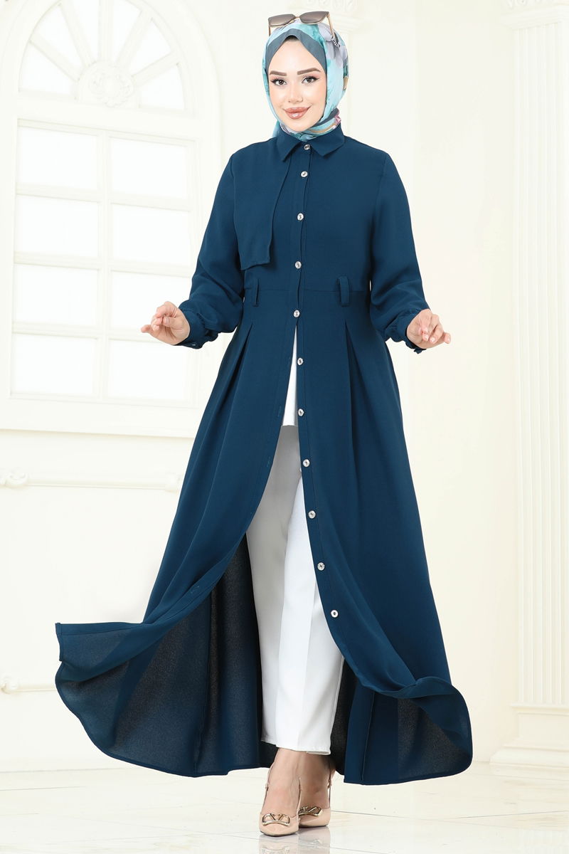Önü Düğmeli Elbise Ferace 283ASN888-MS Petrol
