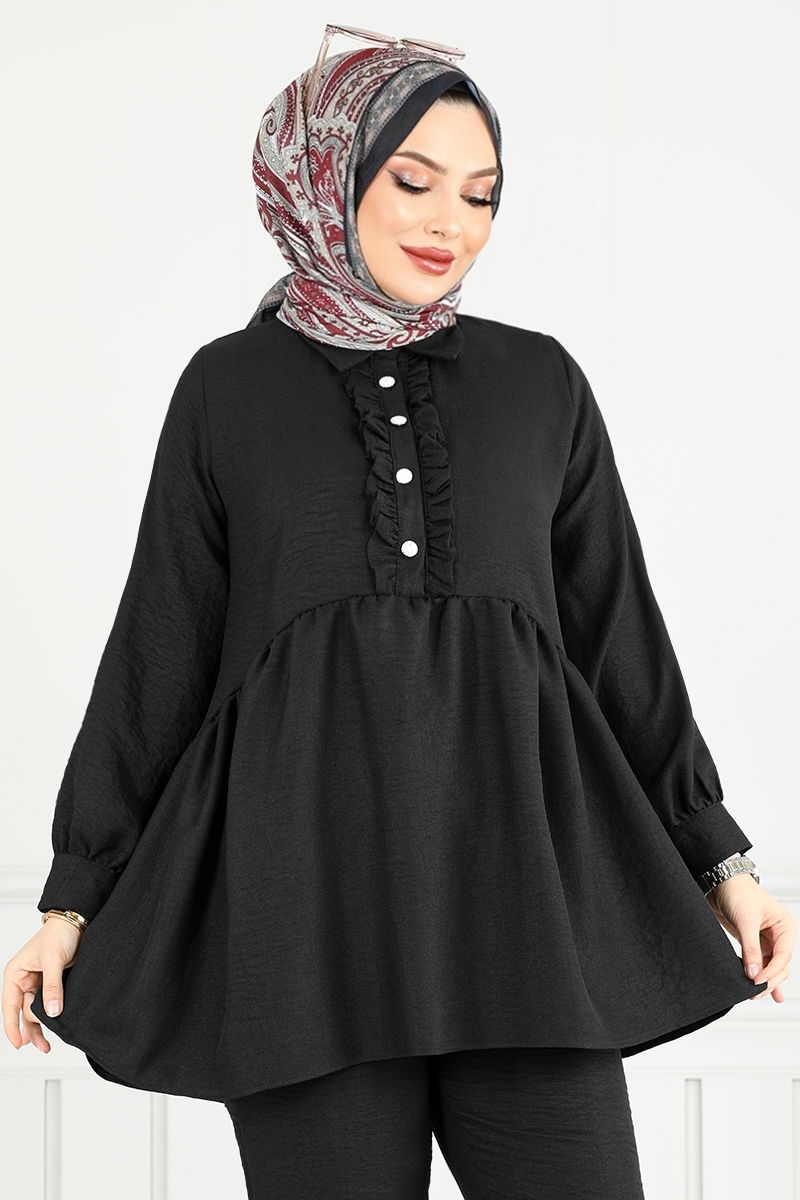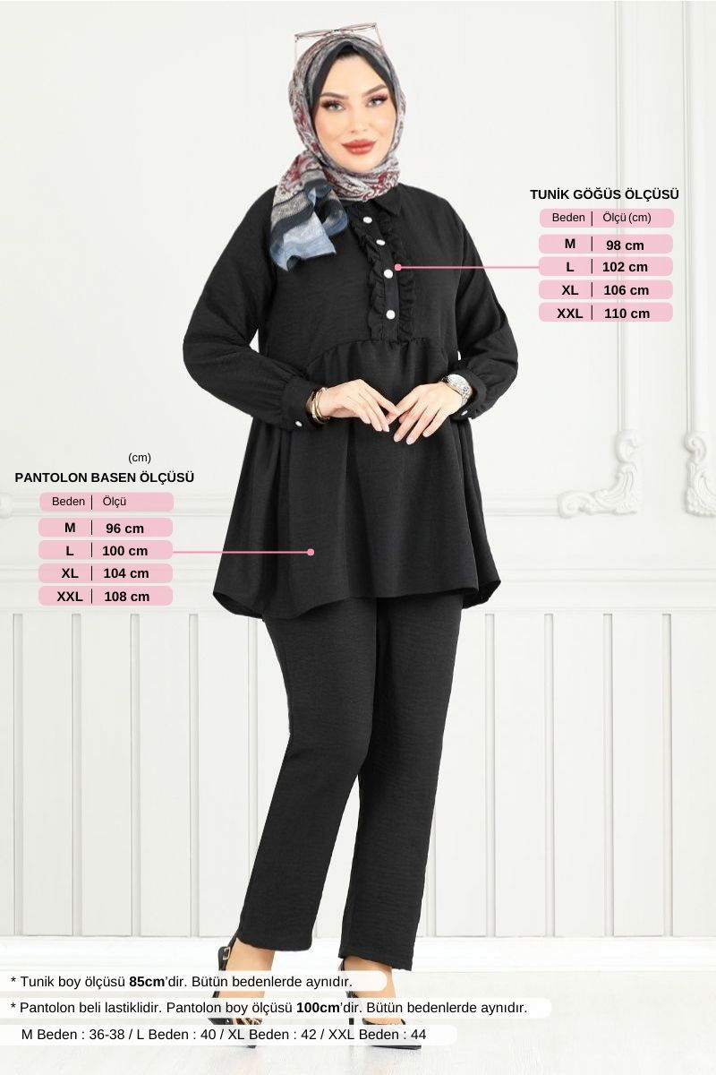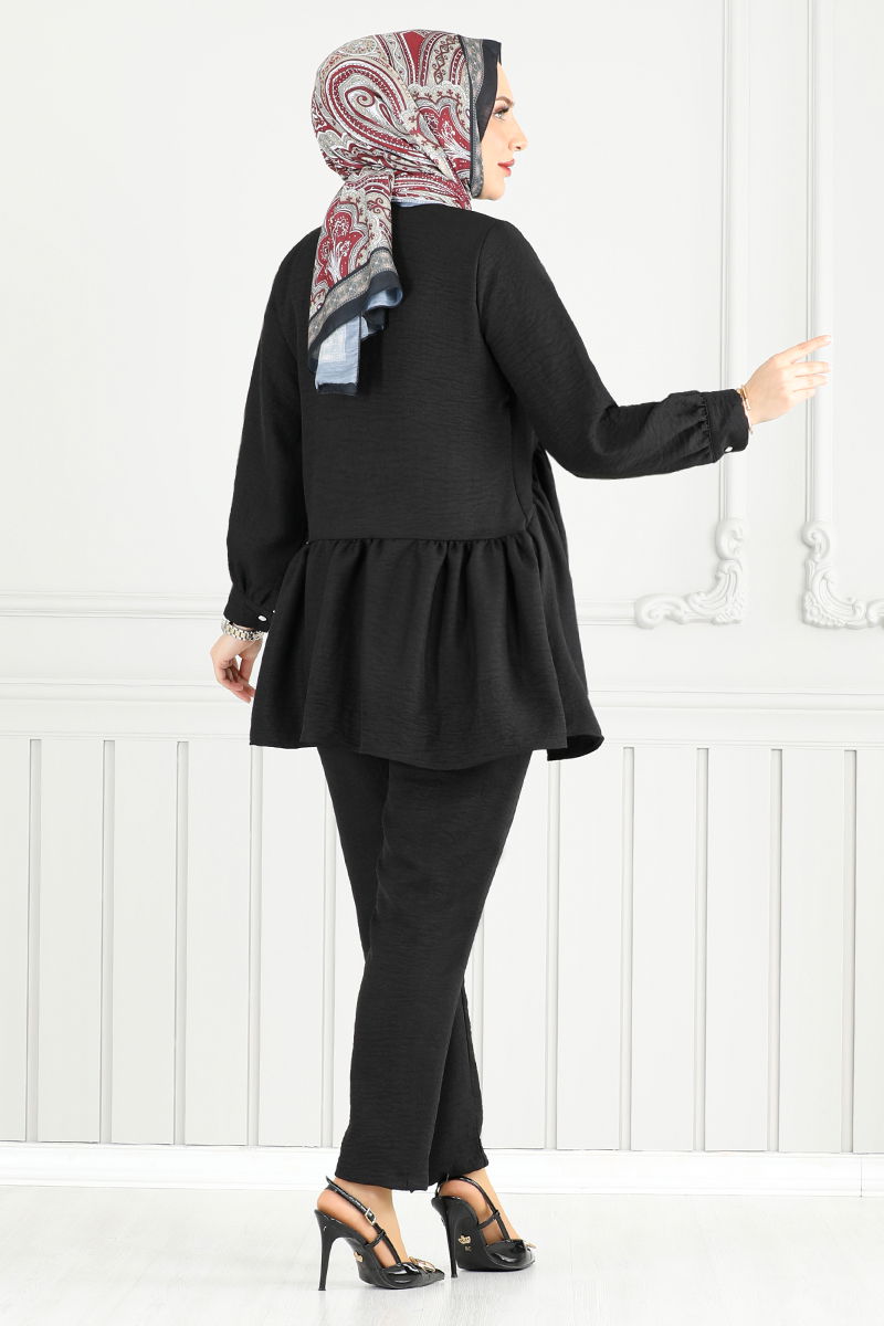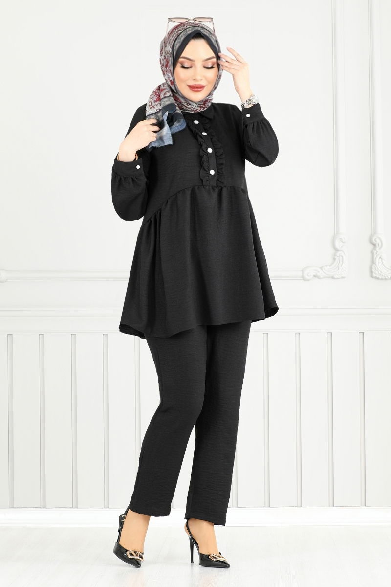 Önü Fırfırlı Keten Takım 6093TGE913-M Siyah