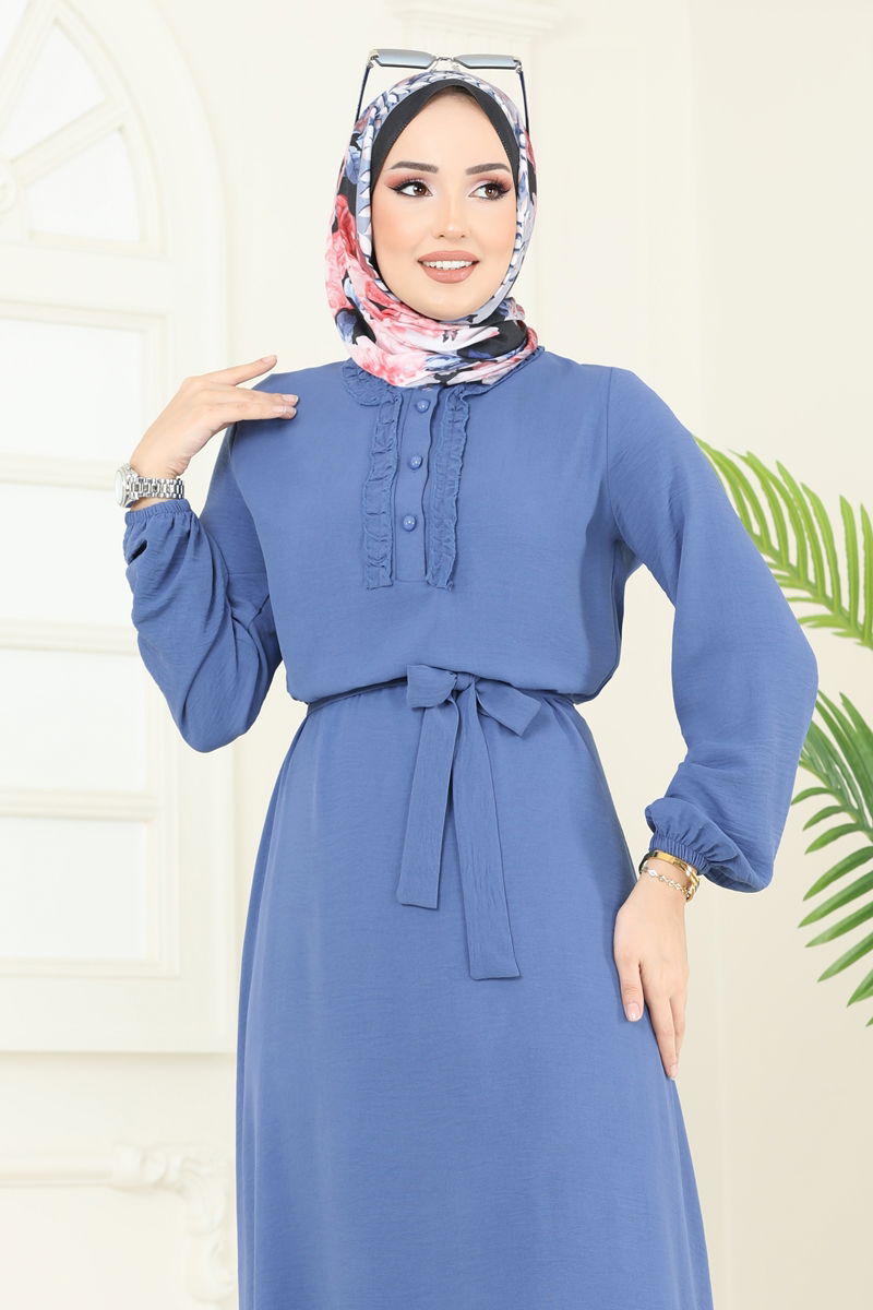 Önü Fırfırlı Tesettür Elbise 1259BM387-MS İndigo