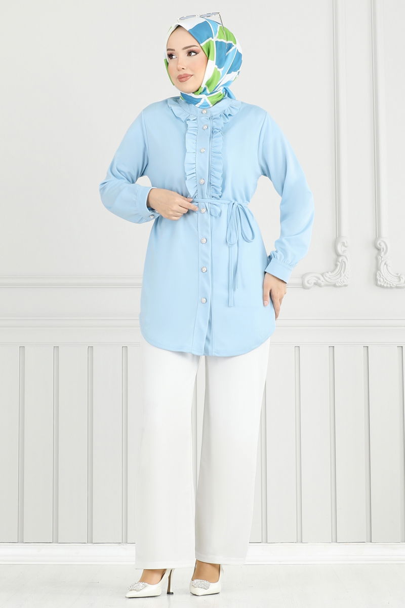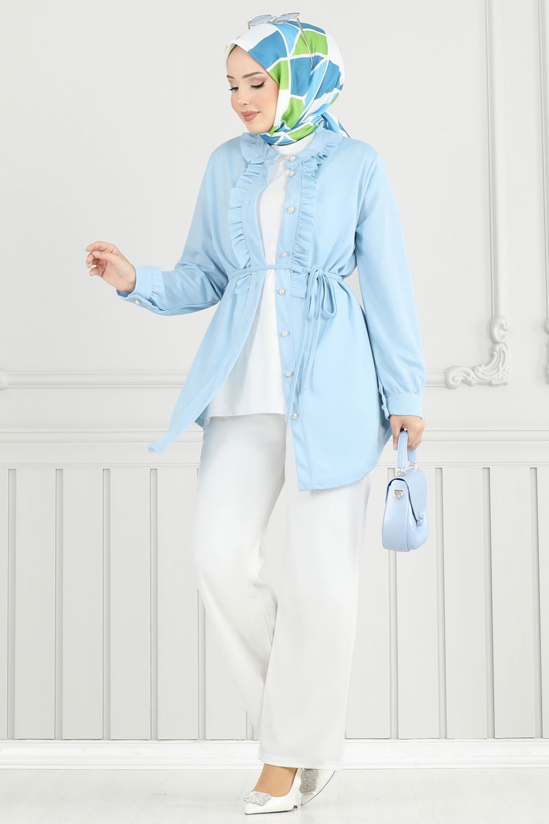 Önü Fırfırlı Tesettür Takım 2709AYD574-MS Bebe Mavisi&Ekru