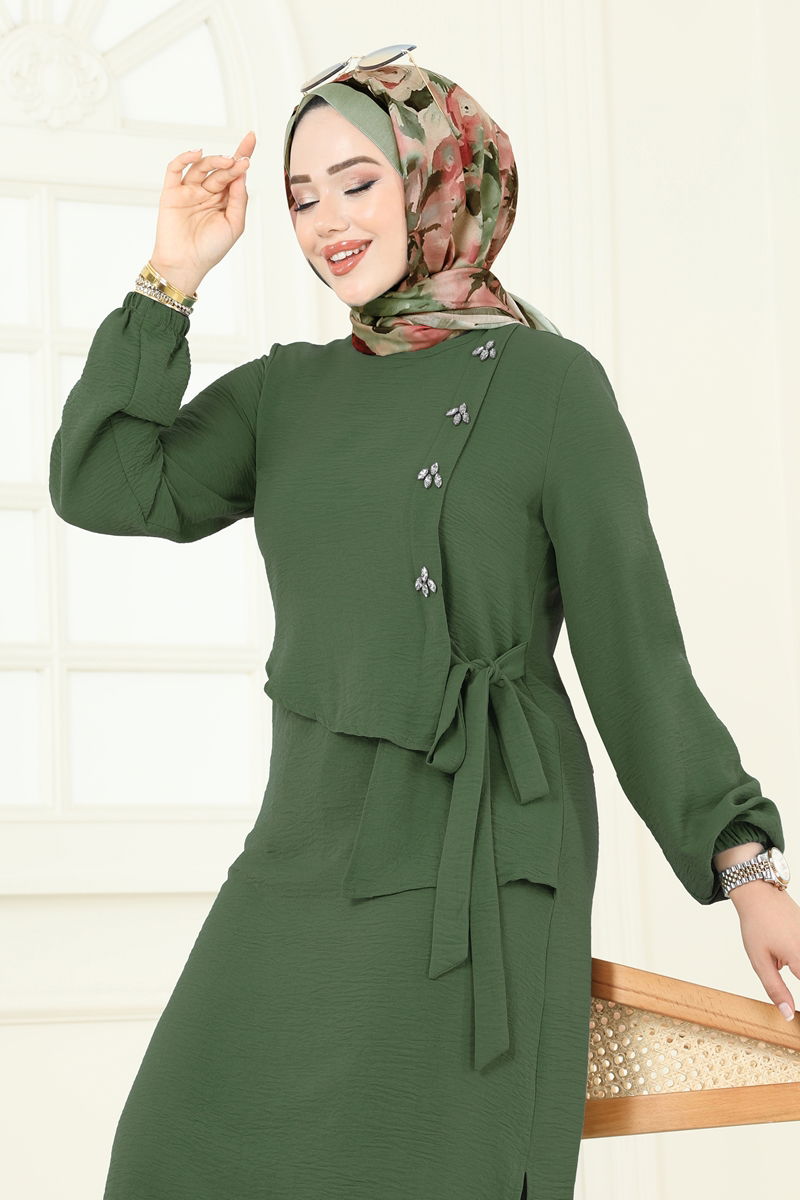 Önü Taşlı Bağcıklı Takım 2719SL432-MS Haki