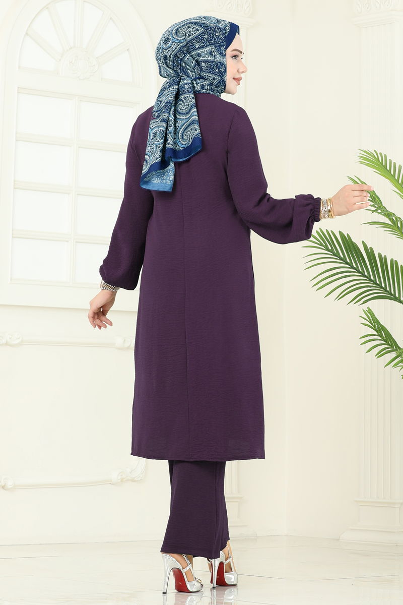 Önü Taşlı Bağcıklı Takım 2719SL432-MS Mor