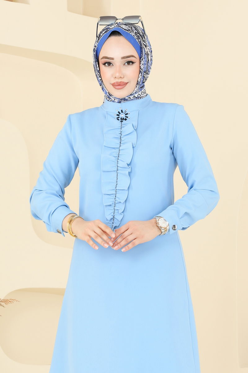 Bebe Mavisi Taşlı Şık Tesettür Takım