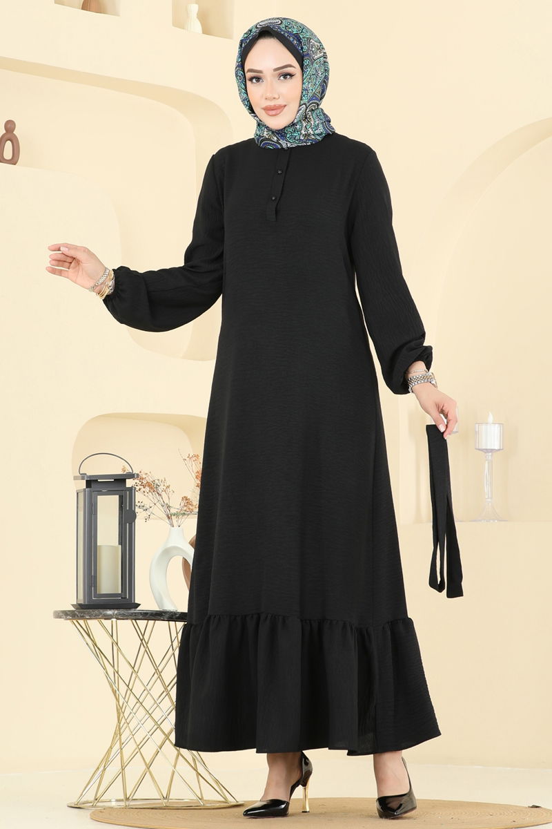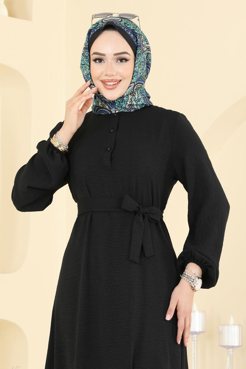 Önü Yarım Düğmeli Elbise 5001BM387-MS Siyah
