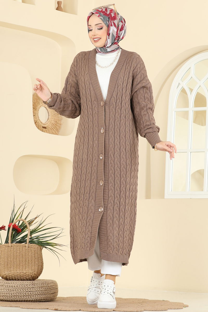 Örgü Desenli Triko Hırka 377BRZ597-MS Koyu Vizyon
