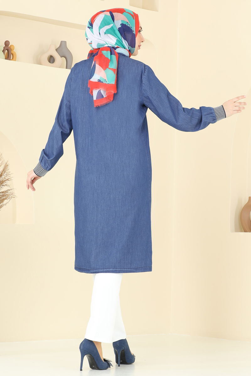 Introducing the Garni Detail Denim Jacket, a stylish modest wear suitable for all seasons. This piece can be washed at 30 degrees on a gentle cycle. It is made from a high-quality blend of Tencel denim fabric. Featuring a mandarin collar design, this jacket offers a contemporary look with its slit detail. It is unlined and equipped with practical snaps and pockets on the front for convenience. An ideal choice to keep your elegance in any setting.