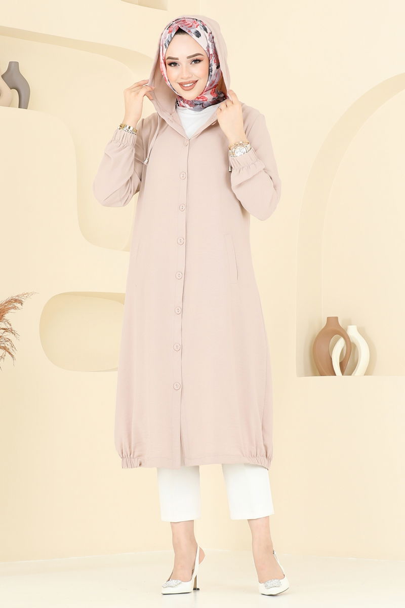Product Feature : It is a new season hijab fashion product. The product has a Hooded collar. The product has From the front buttons. Unlined. The hood is sewn to the product. Pocket available. The cuff is rubberized. There may be a tonal difference in the product due to concept photo shoots.
