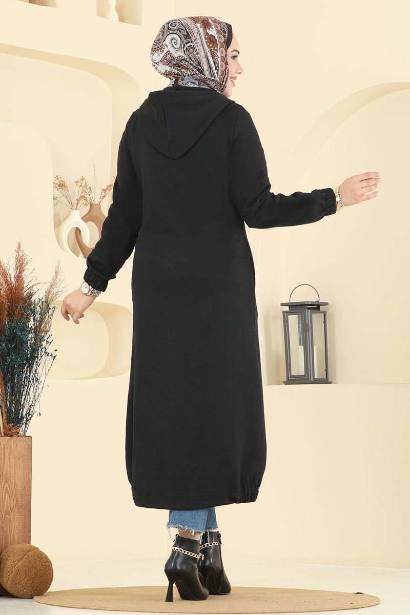 Product Feature : It is a new season hijab fashion product. Unlined. The product has a zipper at the From the front part. The hood is sewn to the product. The tunic hem has elastic detail. The product has a pocket. The cuff is rubberized. There may be a tonal difference in the product due to concept photo shoots.