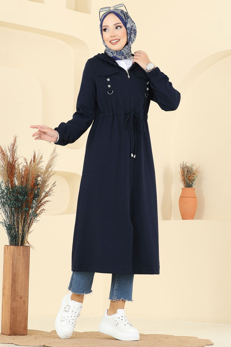 Product Feature : It is a new season hijab fashion product. The product has a Hooded collar. Unlined. The product has a zipper at the From the front part. The hood is sewn to the product. Details are sewn. Pocket details are accessories. The cuff is rubberized. There may be a tonal difference in the product due to concept photo shoots.