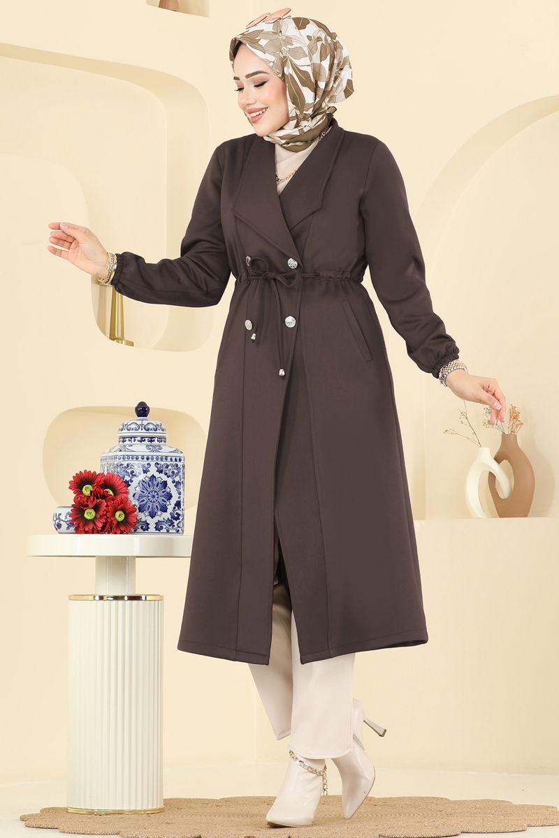 Product Feature : It is a new season hijab fashion product. There are double buttons available from the front. It has a laced waist. The product has a Double-breasted collar. Unlined. Pocket available. The cuff is rubberized. There may be a tonal difference in the product due to concept photo shoots.