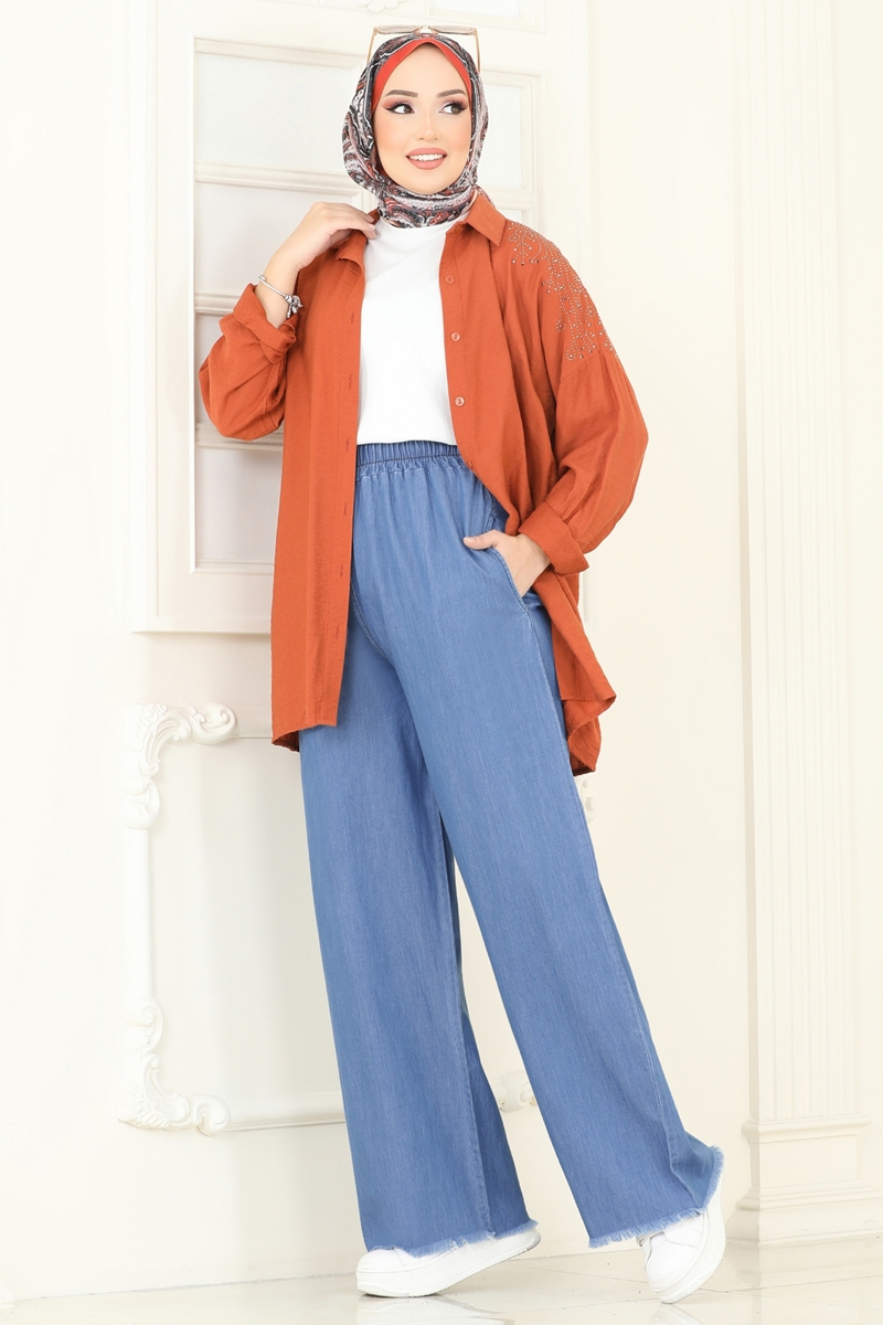 Paçası Püsküllü Tensel Kot Pantolon 9008LD1070-MS Kot