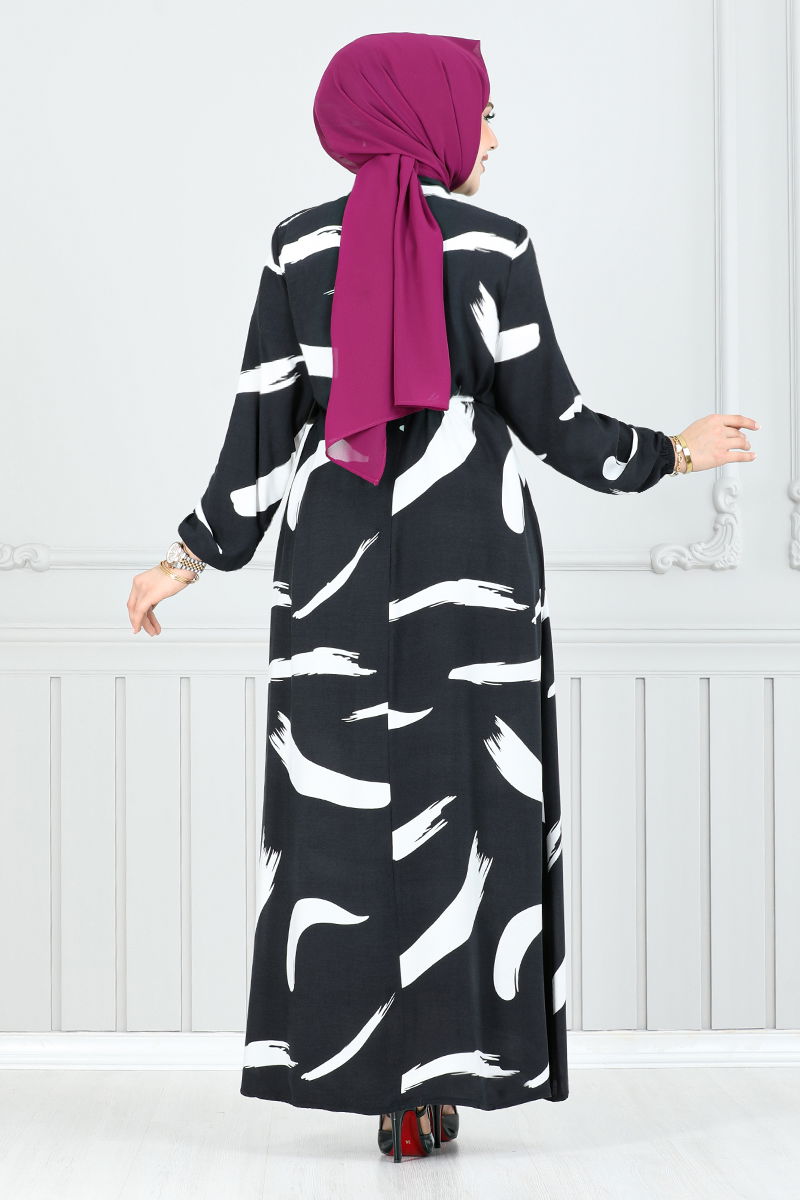 • Patterned Viscose Dress BlackWoods Feature: It is made of viscose fabric. It can be used in Four Seasonal seasons. Product Feature: New season hijab is a fashion product. The product is a Half-Judge collar. It is unlined. The product is zipped from the back. The belt is included in the product, it may not be used on request. The cuff is rubberized.There may be a tonal difference in the product due to concept photo shoots. Washing : Hand washing should be done. Belt Feature: The two ends of the belt are sewn to prevent the belt from fluctuating, the middle part is left empty (seamless). (The product on the model is size 1.) The stylish and comfortable Patterned Viscose Dress has a four-season wearable design. This hijab dress is made of lightweight and breathable viscose fabric. While offering a modern look with a half-Dominant collar, it is made easy to wear and remove with a zipper detail on the back. The belt included in the product minimizes fluctuation thanks to the fact that both ends are sewn. The belt can be removed optionally. The cuffs of the dress are rubberized and offer a comfortable use. Keep your elegance both daily and on special occasions with this hand-washable dress.