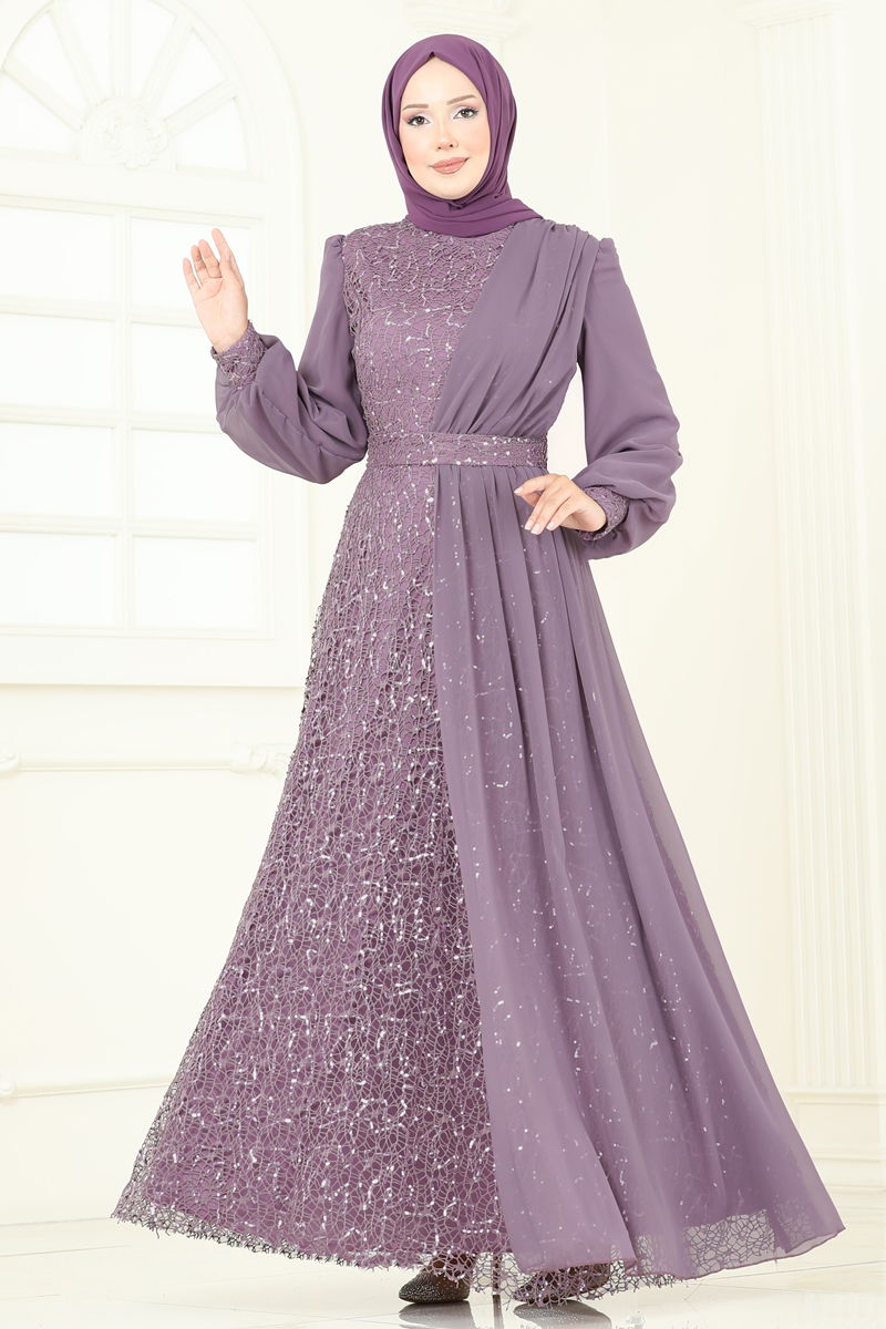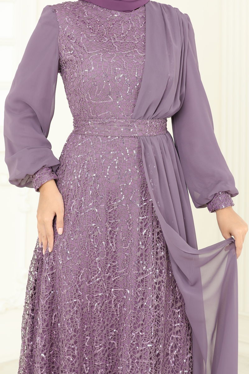 Payet Detaylı Şifon Abiye 2819ELC1143-MS Koyu Lila
