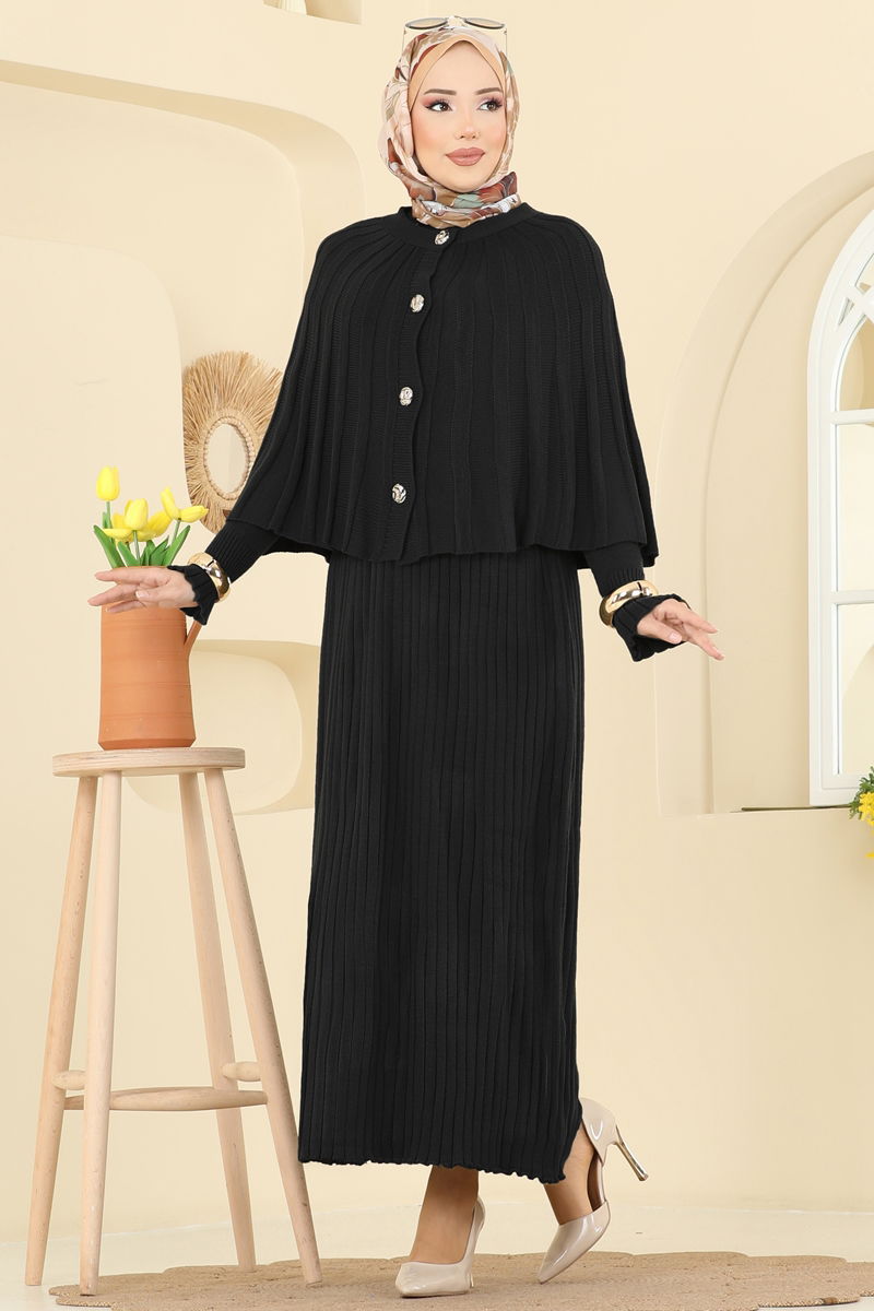 Pelerin Detaylı Elbiseli Takım 4478BRZ597-MS Siyah