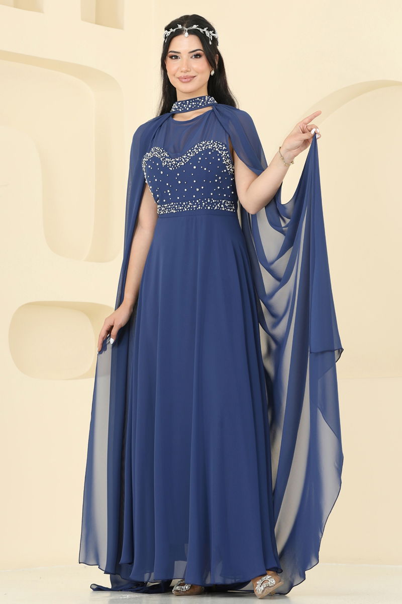 Pelerin Detaylı Taşlı Abiye 8112AB368-MS Laci