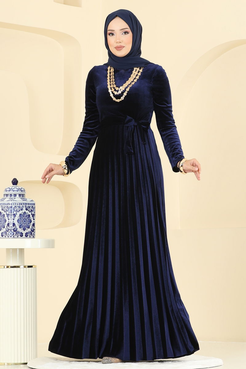 Pilise Detaylı Kadife Elbise 2047MEY846-MS Laci
