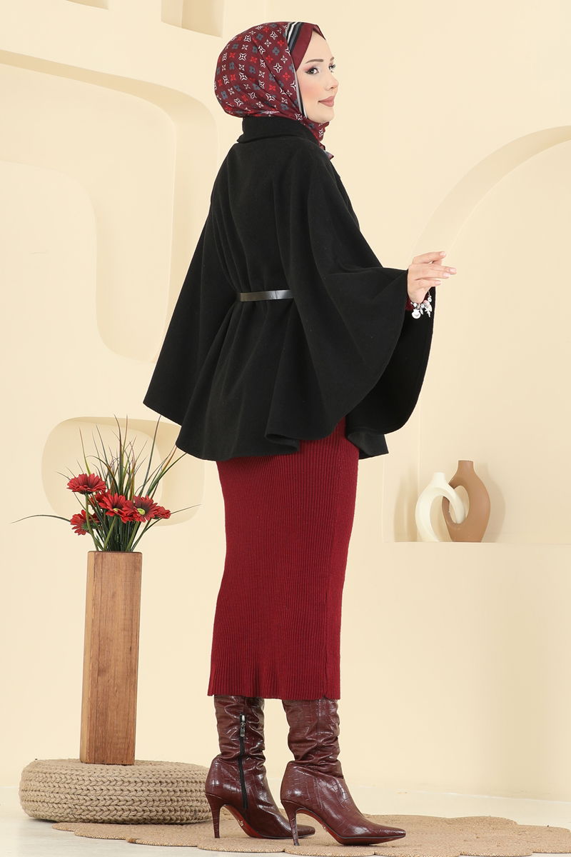 The Button-Collared Cashmere Poncho is an ideal choice for cold days. Its unique design and practicality will make it an essential item during the winter months. Its delicate fabric offers comfortable wear. With easy-care features, it is long-lasting. Its chic and practical design helps maintain your elegance at any event.