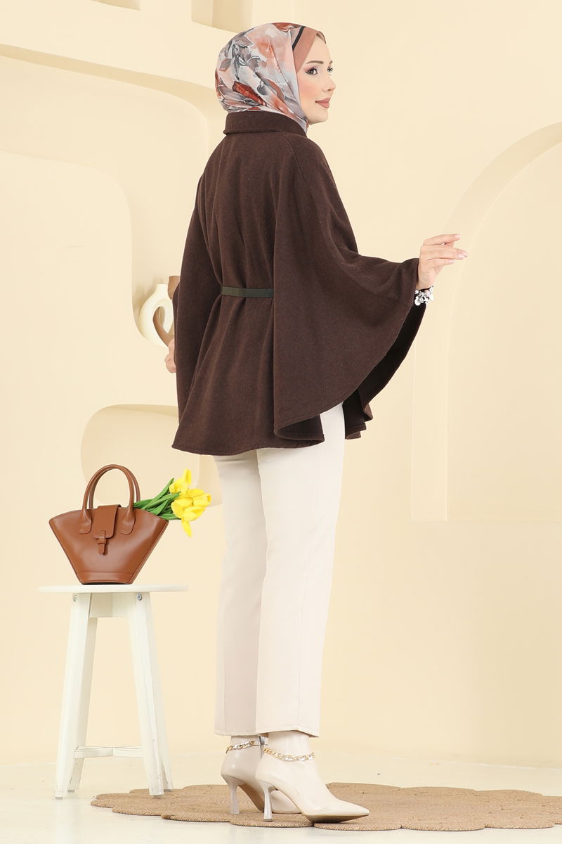 The Button-Collared Cashmere Poncho is an ideal choice for cold days. Its unique design and practicality will make it an essential item during the winter months. Its delicate fabric offers comfortable wear. With easy-care features, it is long-lasting. Its chic and practical design helps maintain your elegance at any event.