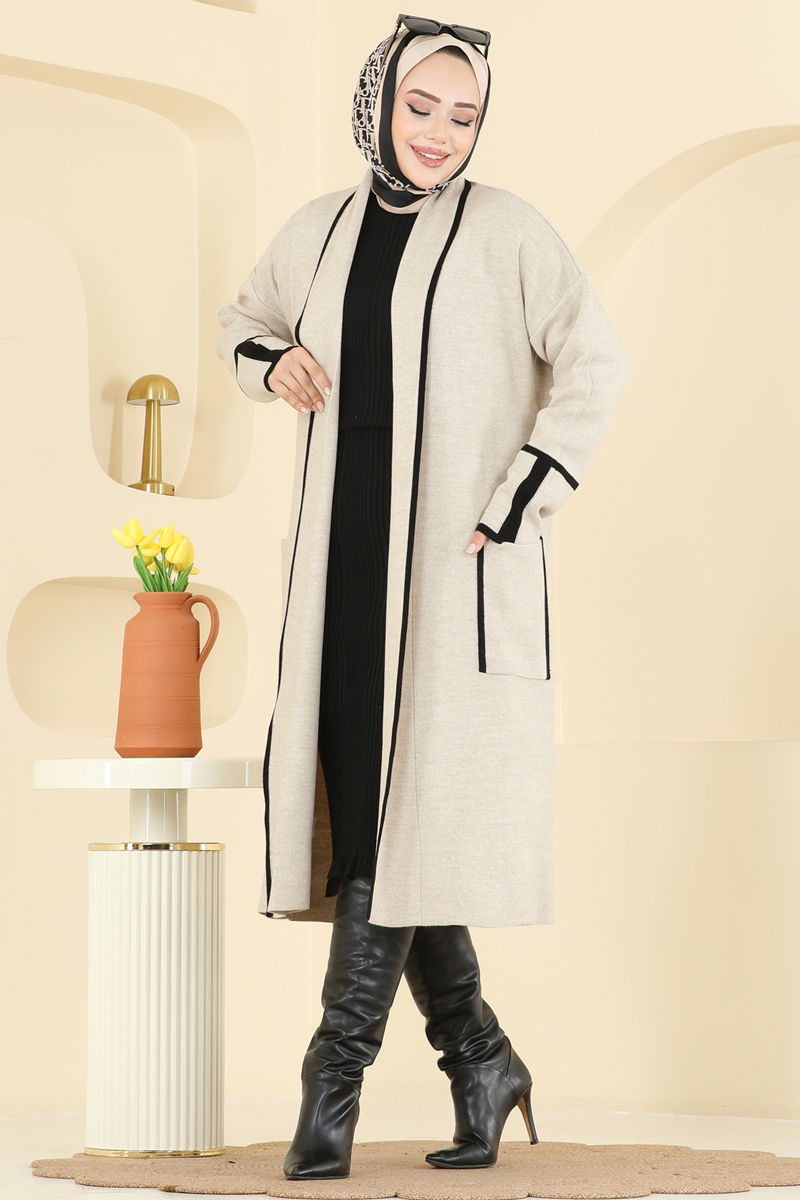 Şal Yaka Triko Hırka 7065BRZ597-MS Taş