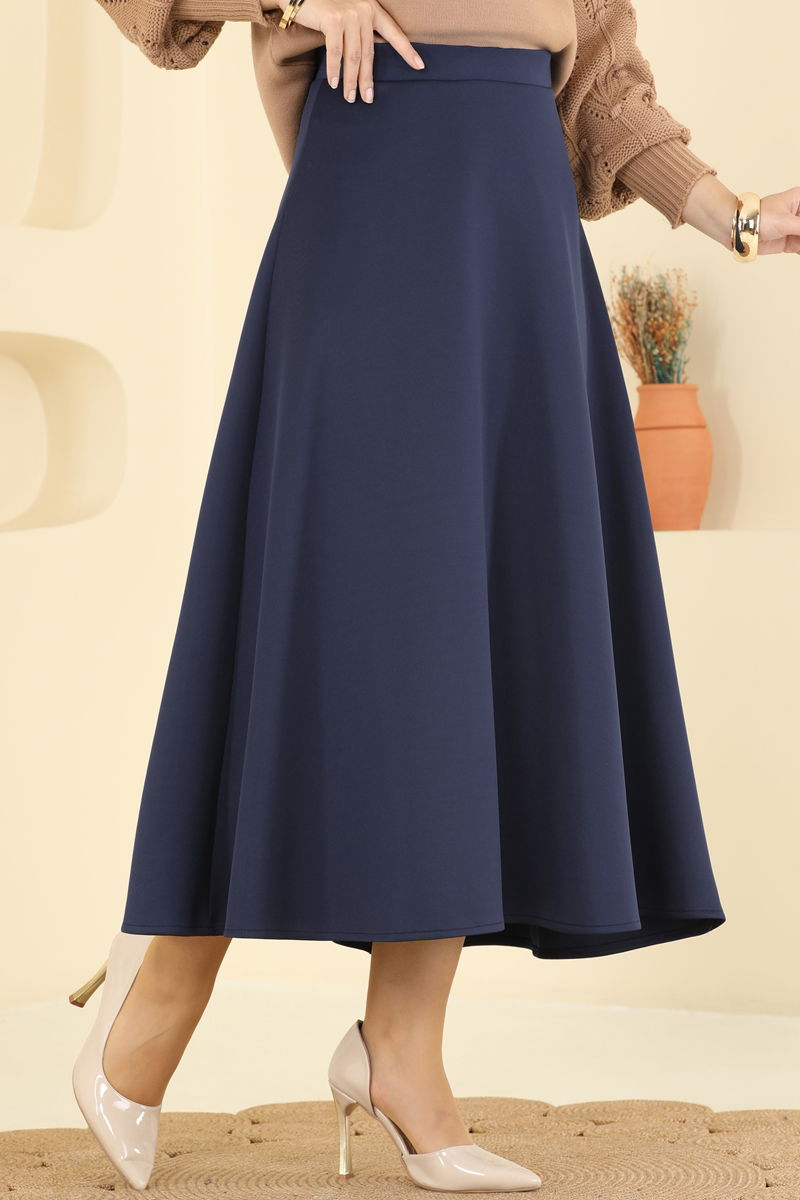 Lacivert Çan Kesim Scuba Etek