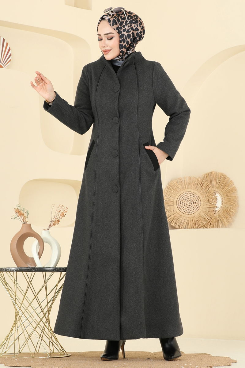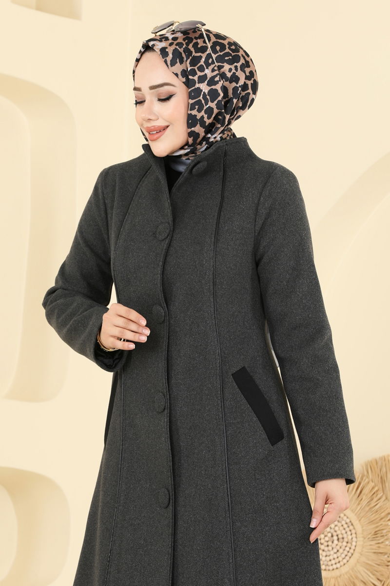 Şerit Detay Kaşe Pardesü 1173OZT1013-MS Antrasit