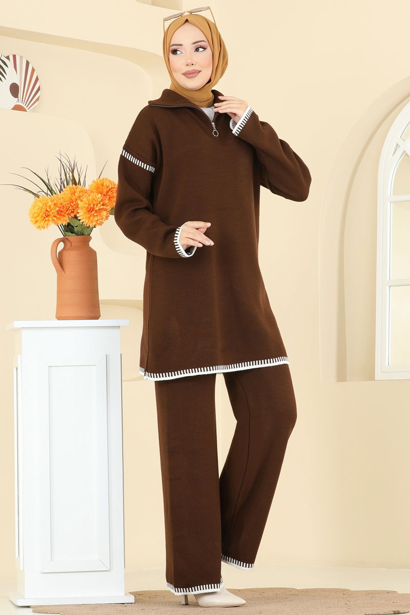 Şerit Detay Triko Takım 2759AYD574-MS Kahve