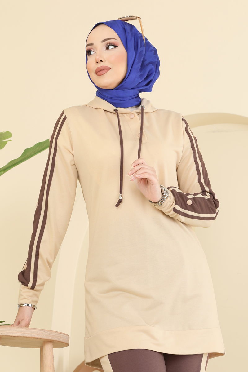 Ürün Hakkında :Moda dünyasının yeni sezon tesettür giyim koleksiyonuna özgüdür. Yaka kısımında bağcıklı tasarımdır. Ürün kapüşonlu bir yakaya sahiptir. Astarlaması yapılmamıştır. Çıtçıt ayrıntıları bulunur ve kapüşon sabittir. Pantolonun beli elastik yapılıdır.Renk tonları fotoğraf çekimi kaynaklı farklılık gösterebilir.
