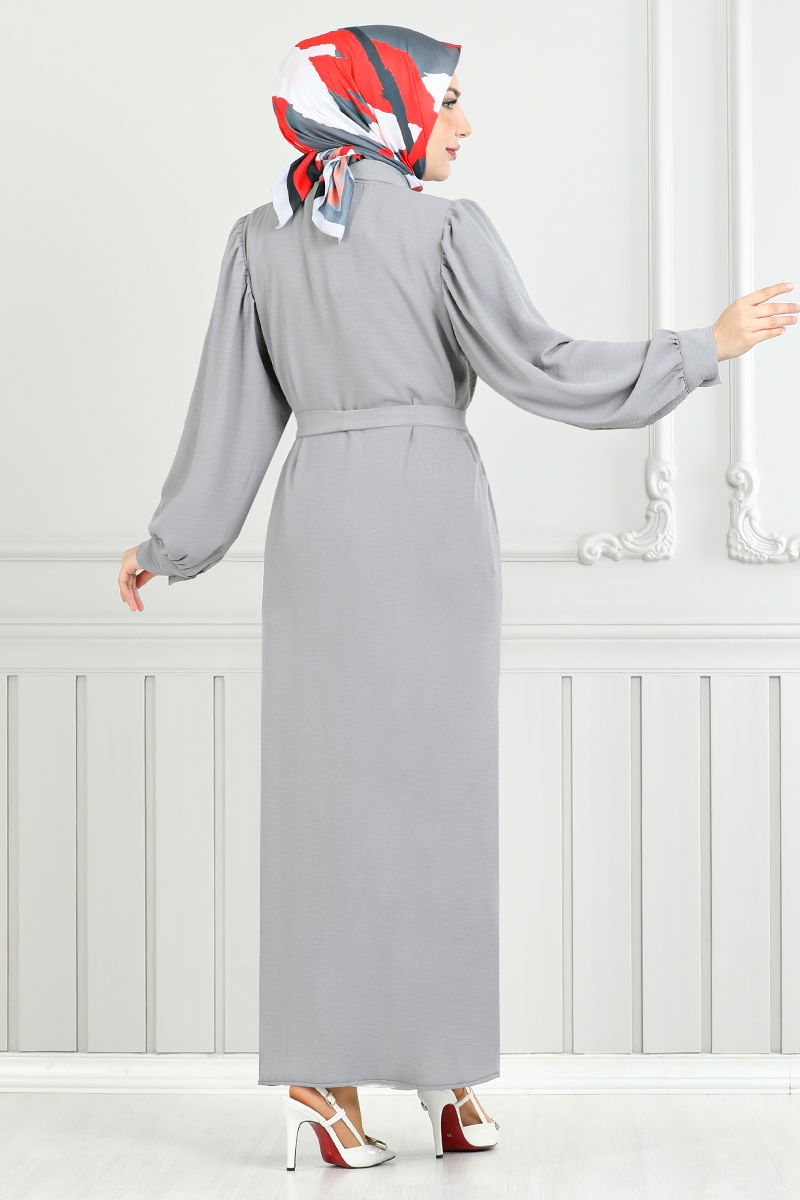 • Dress with Shirt Collar Ferace GriKumaş Feature: It is made of aerobin fabric. It can be used in Four Seasonal seasons. Product Feature: New season hijab is a fashion product. The product is a Shirt collar. The product is buttoned from the front. It is unlined. The belt is included in the product, it may not be used on request. The cuff buttons are active.There may be a tonal difference in the product due to concept photo shoots. Washing : IT CAN BE WASHED WITHOUT TIGHTENING AT 30 DEGREES.(DELICATE WASHING) Belt Feature: The two ends of the belt are sewn so that it does not fluctuate, the middle part is left empty (seamless). (The item on the model is size 38.) This stylish Shirt Collar Dress Ferace can be used comfortably in any season. Thanks to the special aerobin fabric, it has a lightweight and breathable structure. The fact that it can be washed at 30 degrees in a sensitive washing program provides ease of use. The shirt combines classic and modern Decals with its collar and front button design. The belt detail is designed with the ends sewn together to prevent rippling and can be removed on request. The active buttons on the cuffs add functionality. This ferace is ideal for women who want to have style and feel free.