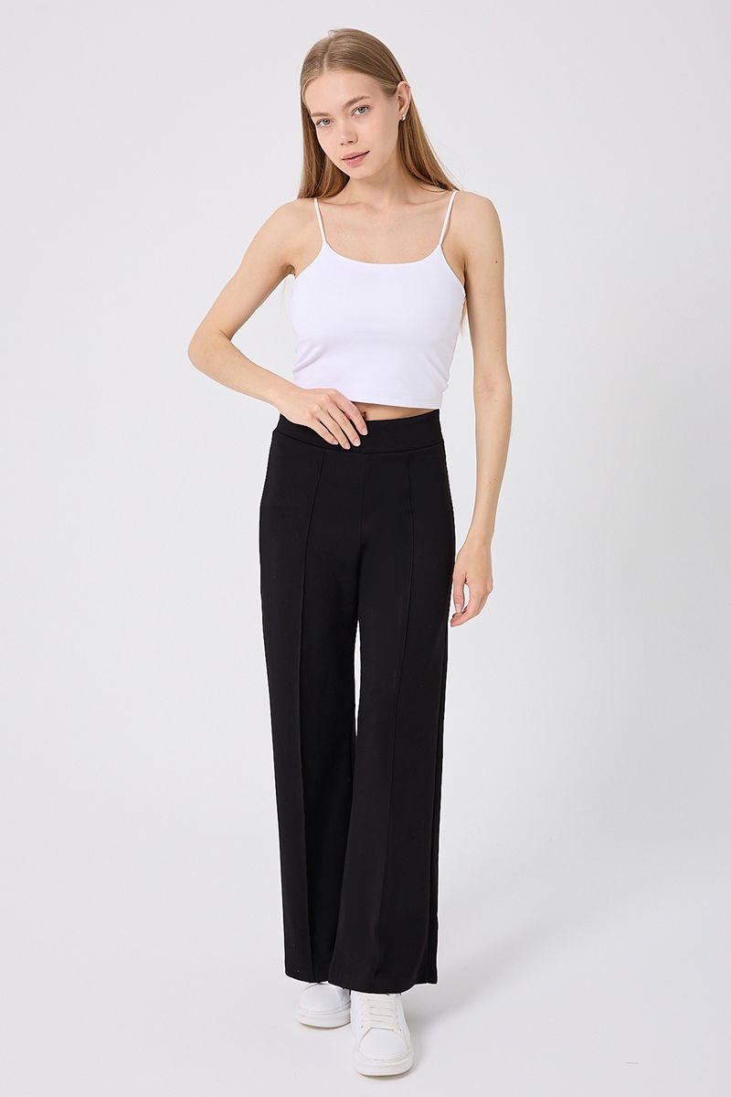 The Nervur Detail Palazzo Sweatpants are suitable for modest dressing and can be comfortably used in all seasons. Made from modal fabric, these pants are unlined and can be washed at 30 degrees with a gentle cycle. The waistband is elasticated, and the displayed model is size S.