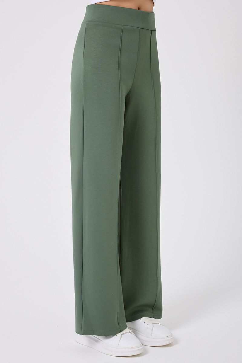 The Nervur Detail Palazzo Sweatpants are suitable for modest dressing and can be comfortably used in all seasons. Made from modal fabric, these pants are unlined and can be washed at 30 degrees with a gentle cycle. The waistband is elasticated, and the displayed model is size S.