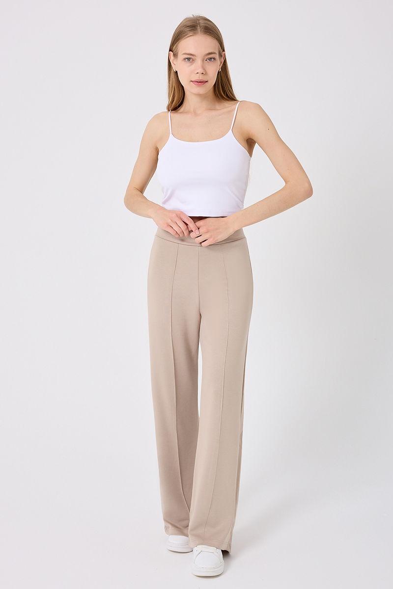 The Nervur Detail Palazzo Sweatpants are suitable for modest dressing and can be comfortably used in all seasons. Made from modal fabric, these pants are unlined and can be washed at 30 degrees with a gentle cycle. The waistband is elasticated, and the displayed model is size S.