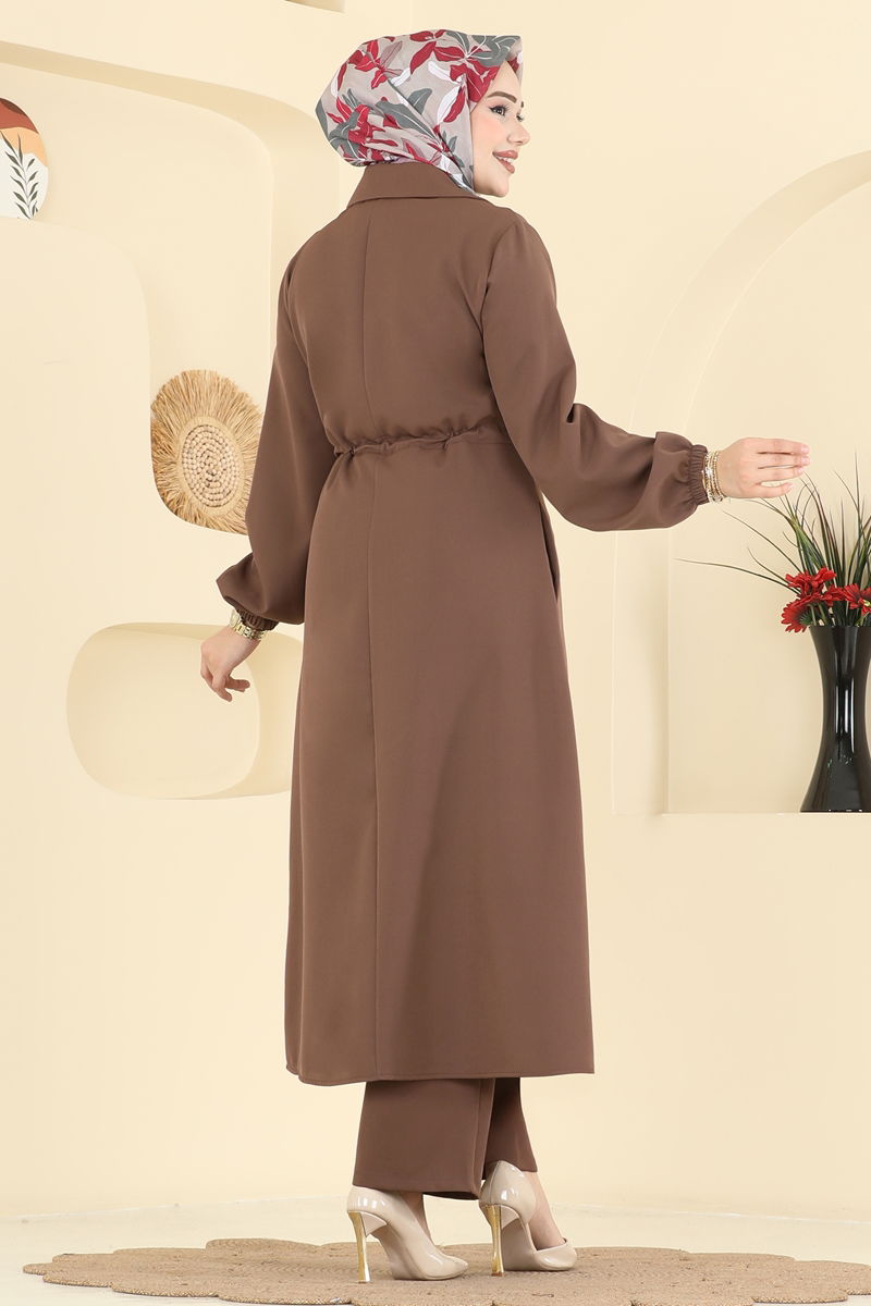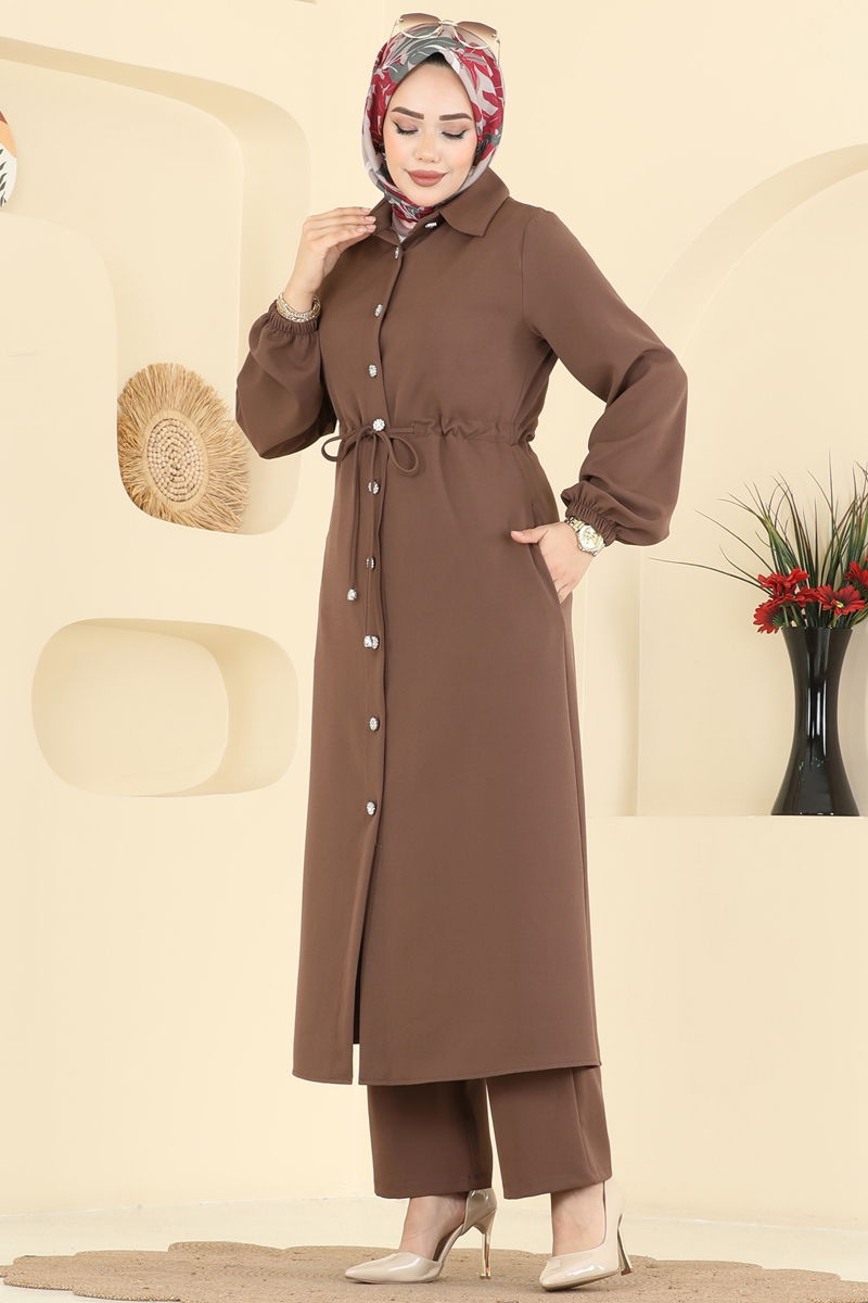 Şık Düğmeli Dabıl Takım 2773SL432-MS Kahve