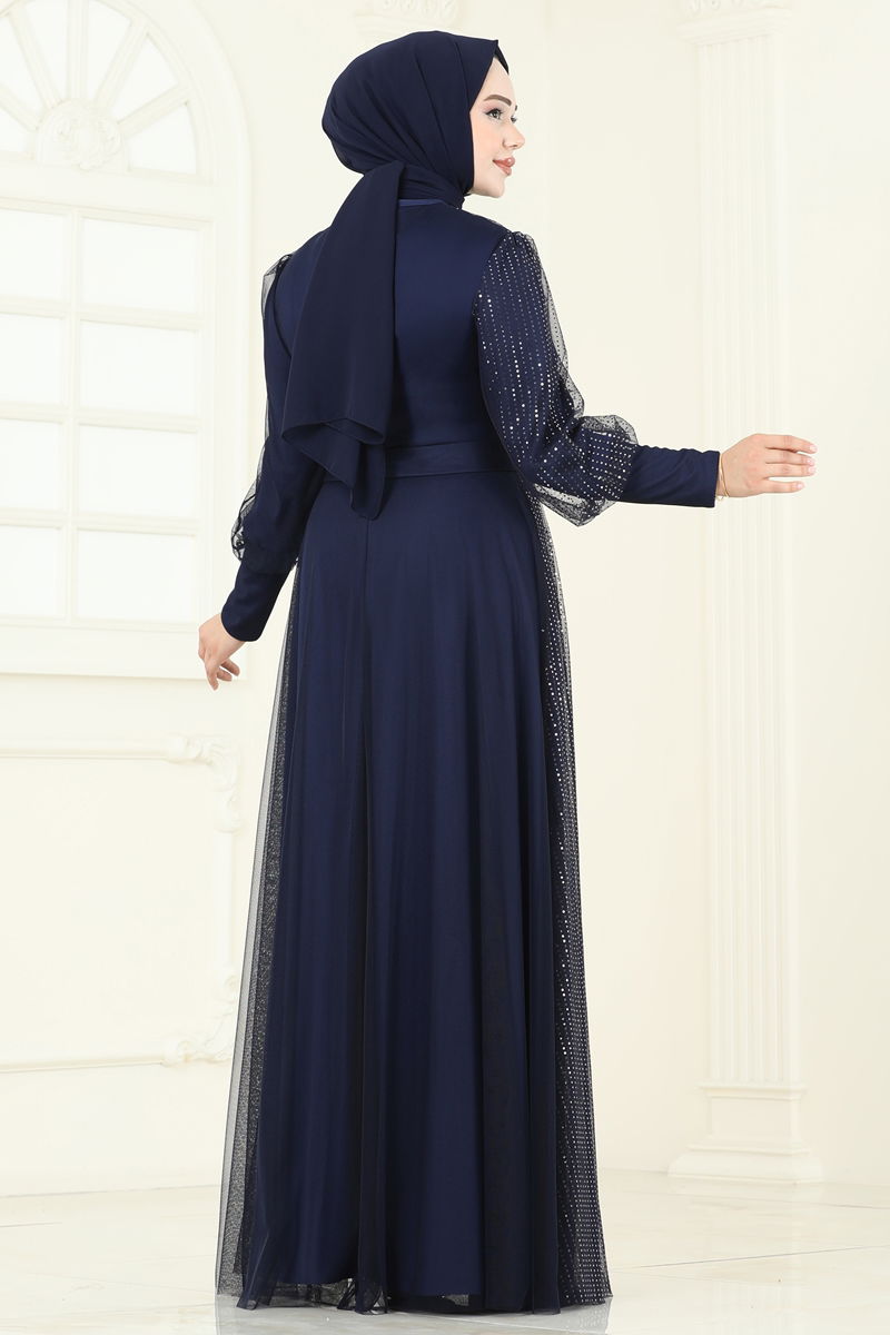 Simli Tül Tesettür Abiye 2457ELC1143-MS Laci